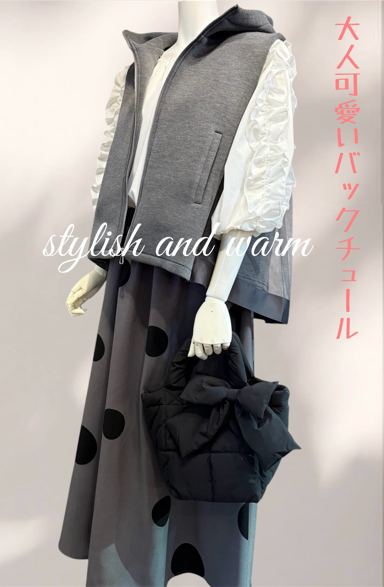 ヒップラインをさりげなくカバーしつつ、立体的なシルエットで美しいレイヤードスタイルが完成♡