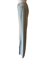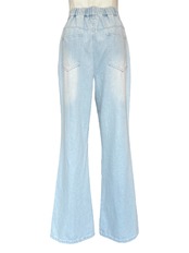 脚のラインをまっすぐキレイに見せてくれる、センターシーム入りのセミフレアデニムパンツ。