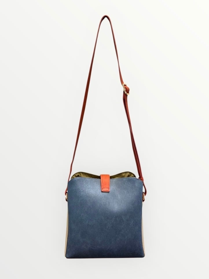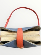 くすみ系のトライアド配色で遊び心と落ち着き感の両方を演出できる技ありバッグ◎