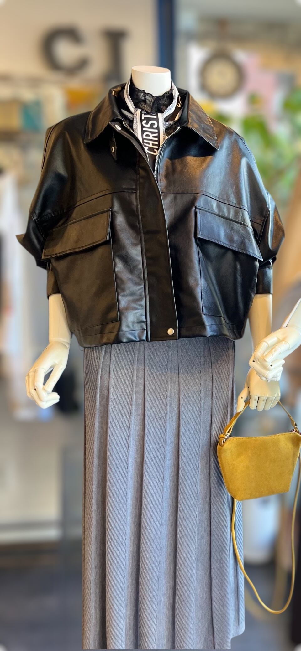 程よいハリ感のフェイクレザーが、スタイリングに大人のエッジを添えてくれる一着☆