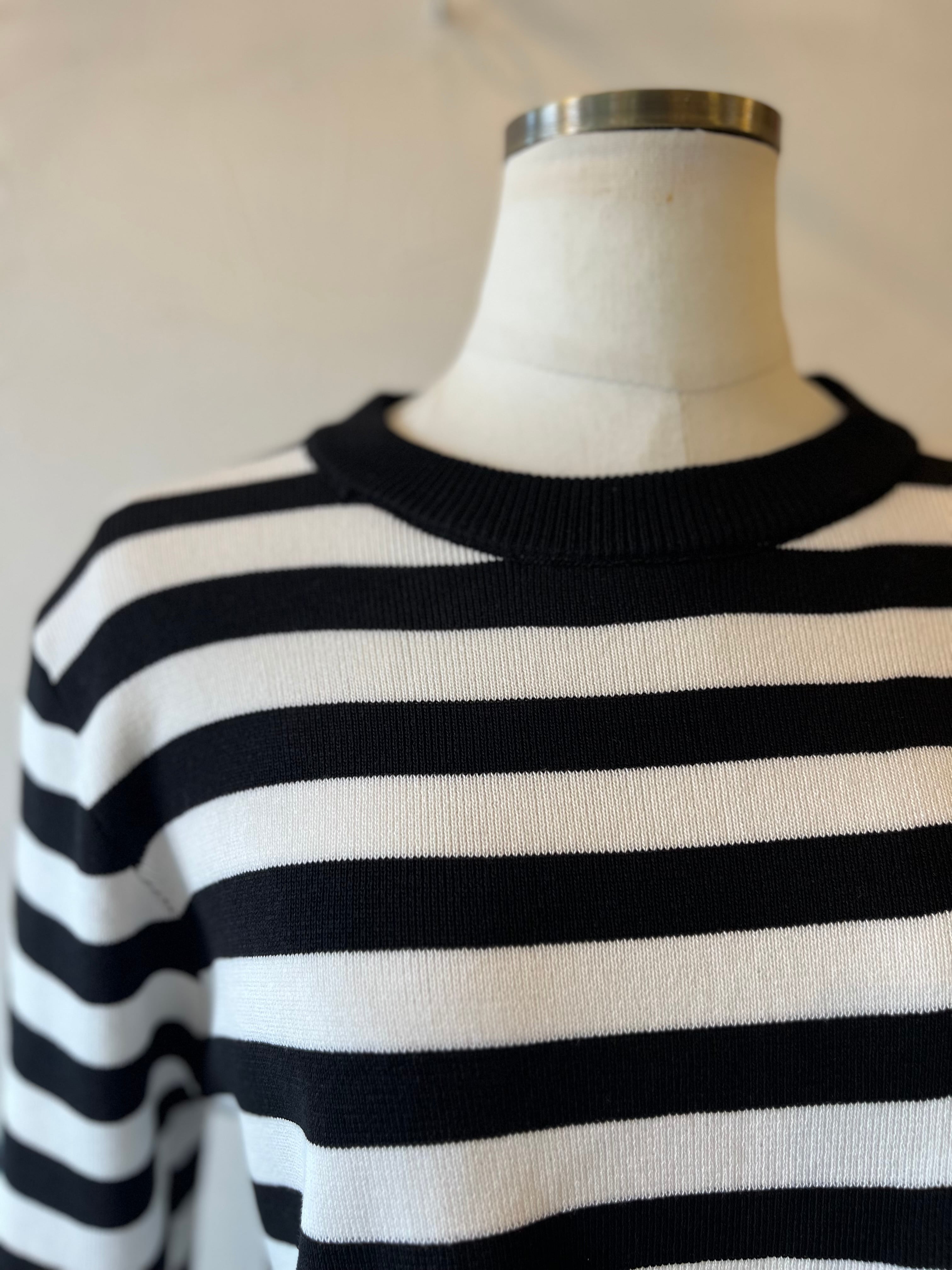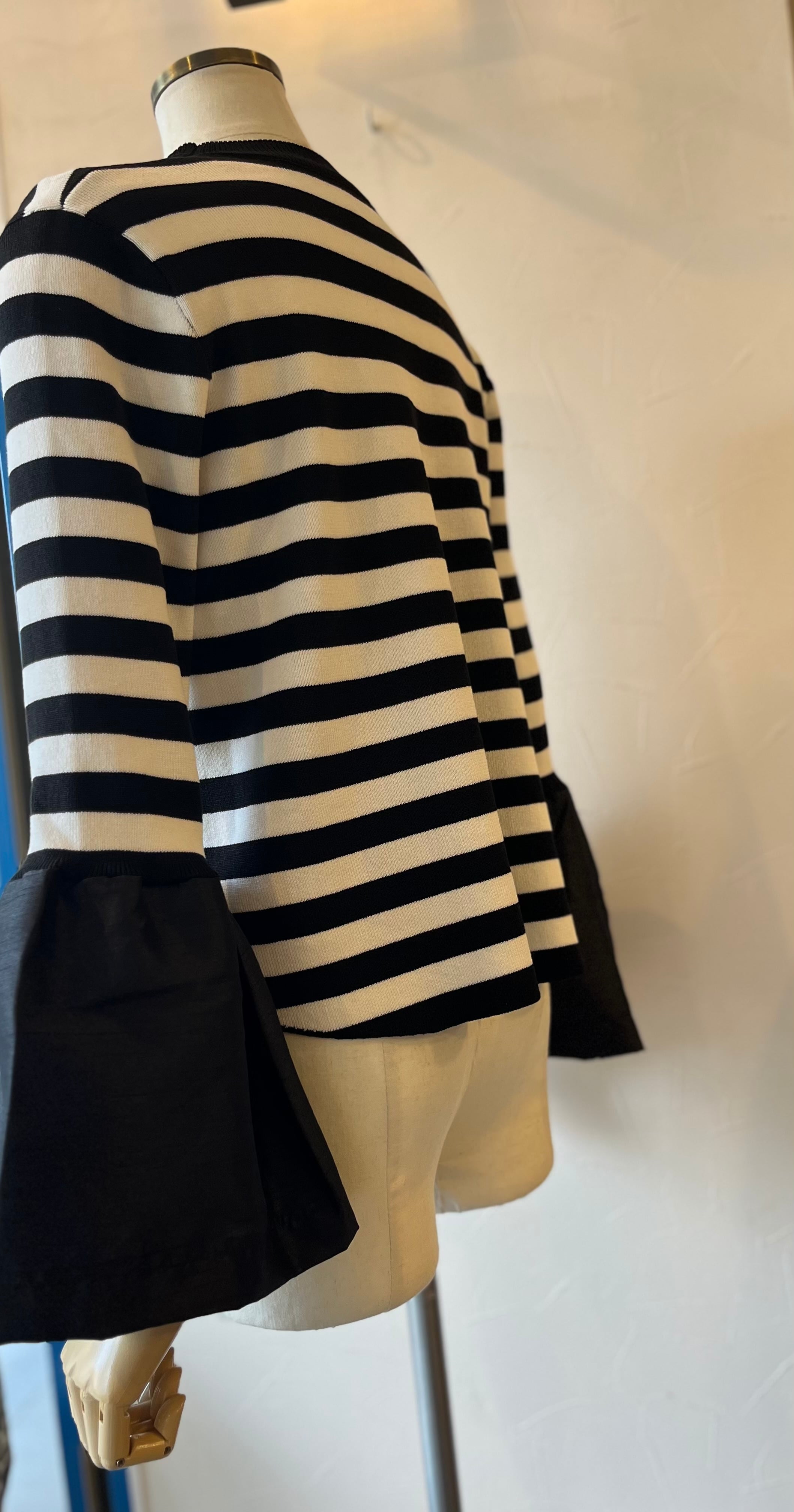 定番のボーダートップスに、ドラマティックな袖デザインで遊び心を加えた一着が登場。