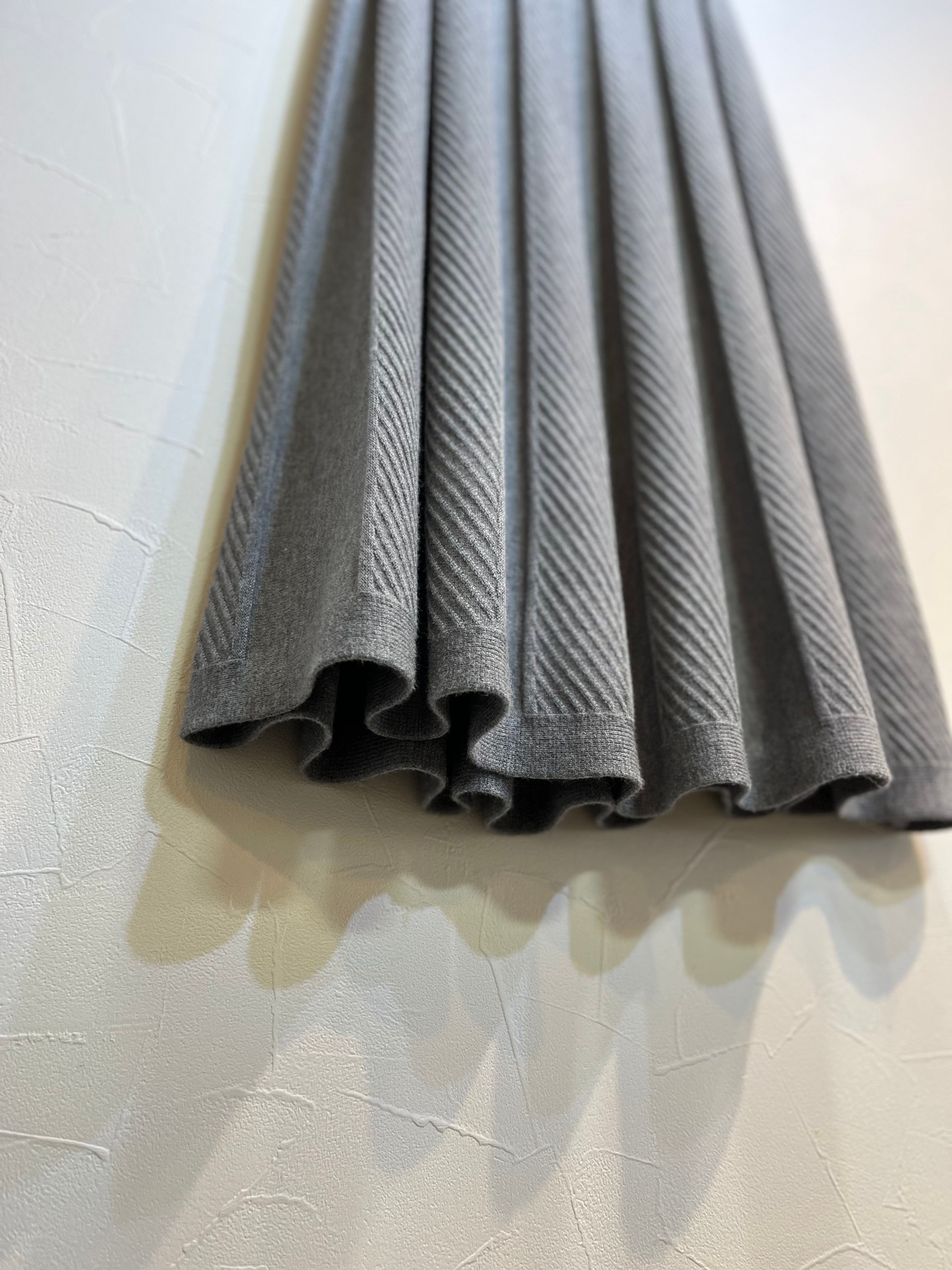 プリーツ風の編み地は広がりすぎず、すっきりとしたシルエットでどの角度から見ても上品な印象。