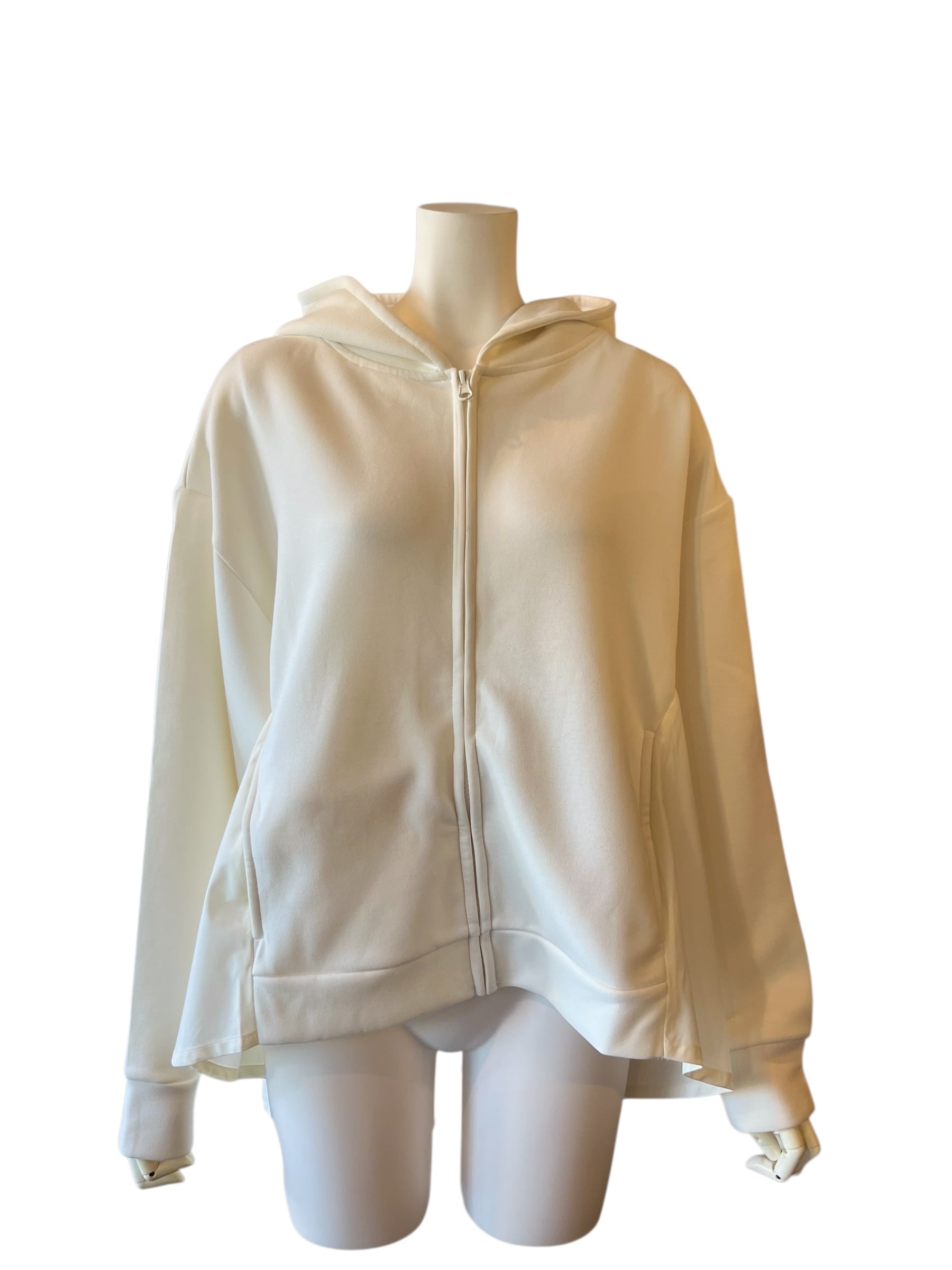 ラフに羽織って、きちんと映える♡バックヘムフレアジップフーディ