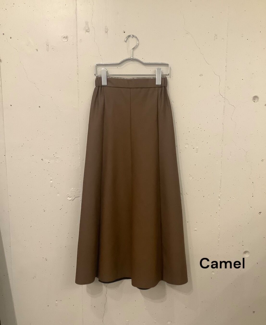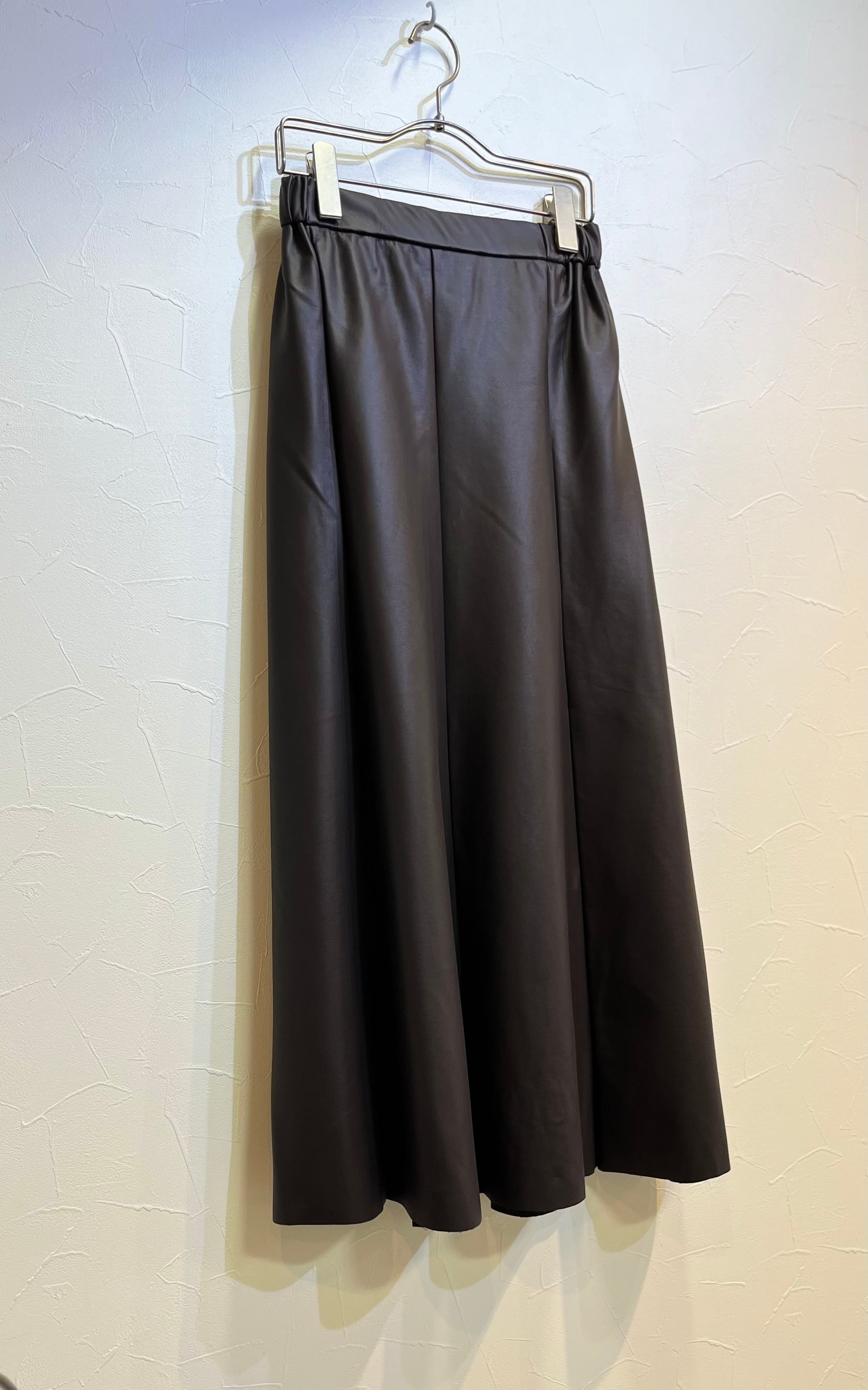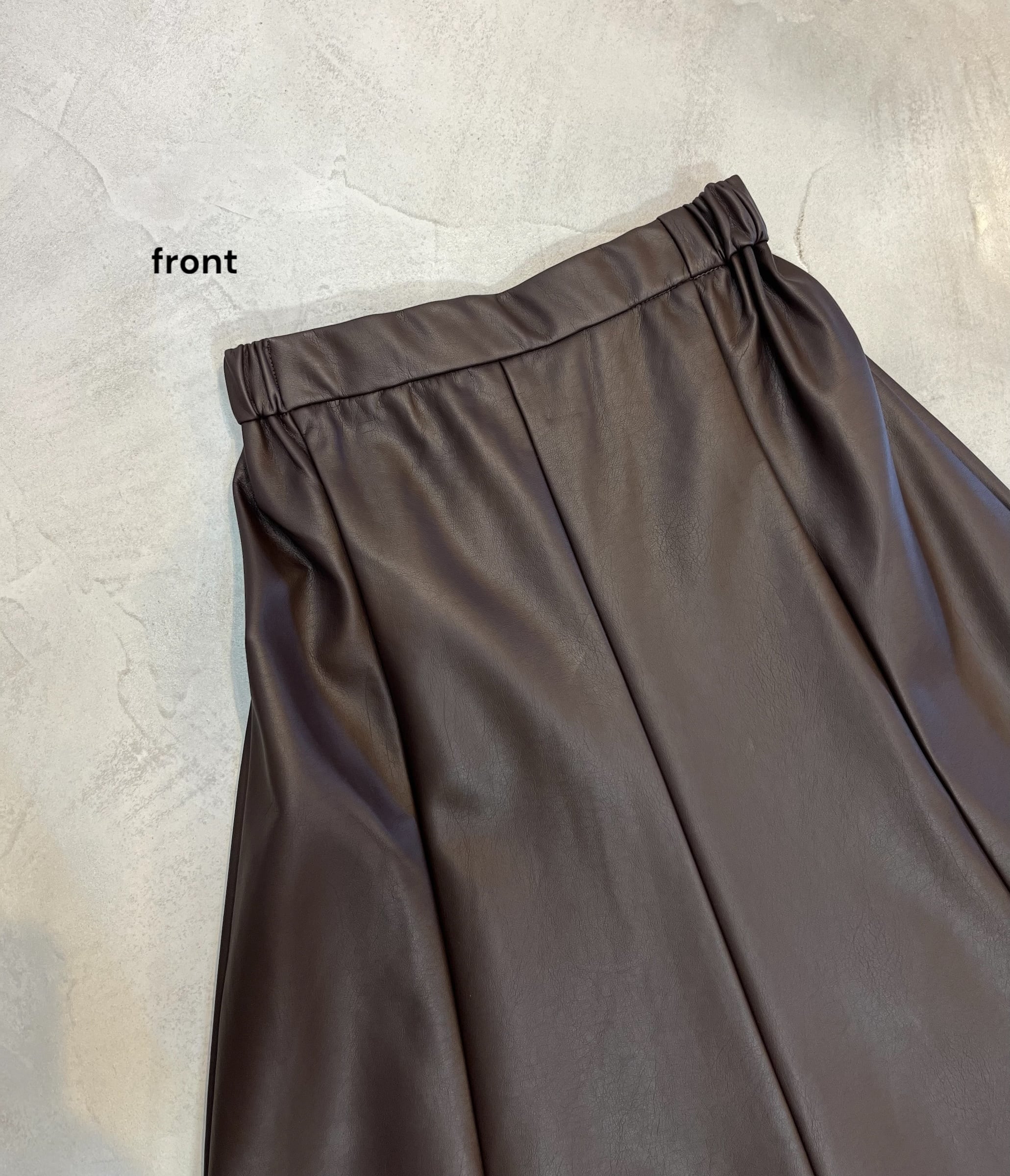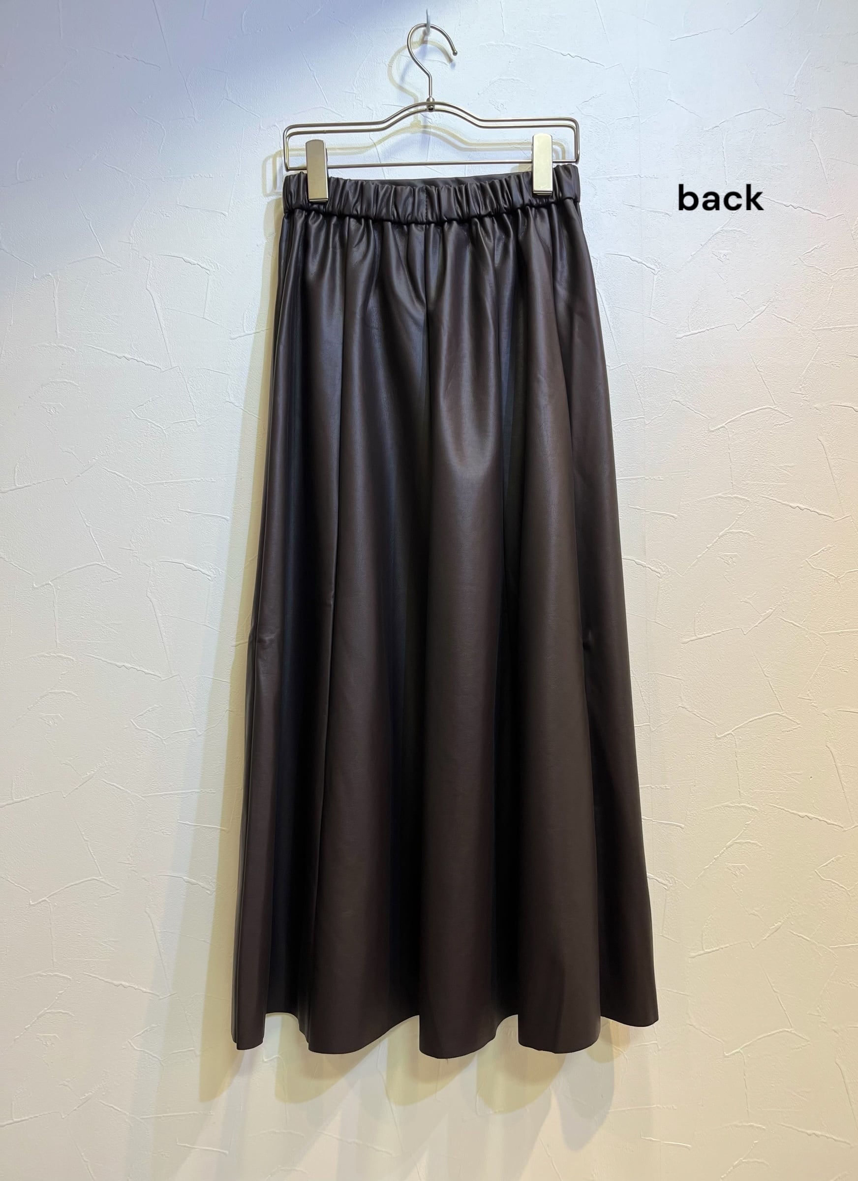 ほどよい艶感と落ち着いた質感が魅力のフェイクレザースカート。