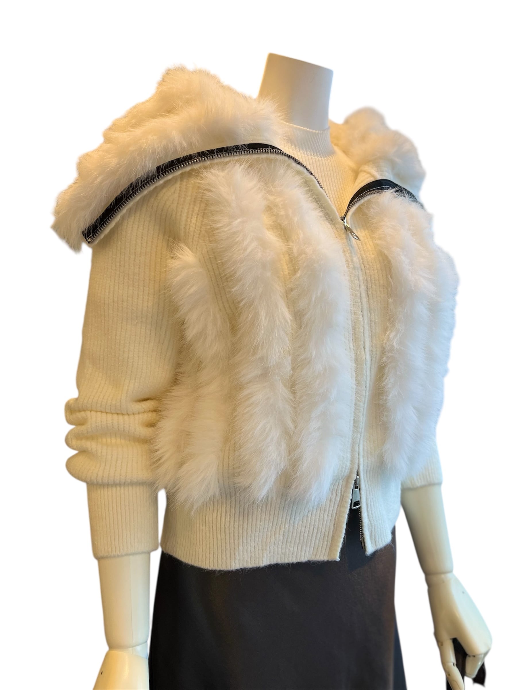 柔らかなニットと贅沢なエコファーの組み合わせが大人女子にぴったりのリュクスなカーディガンブルゾン。