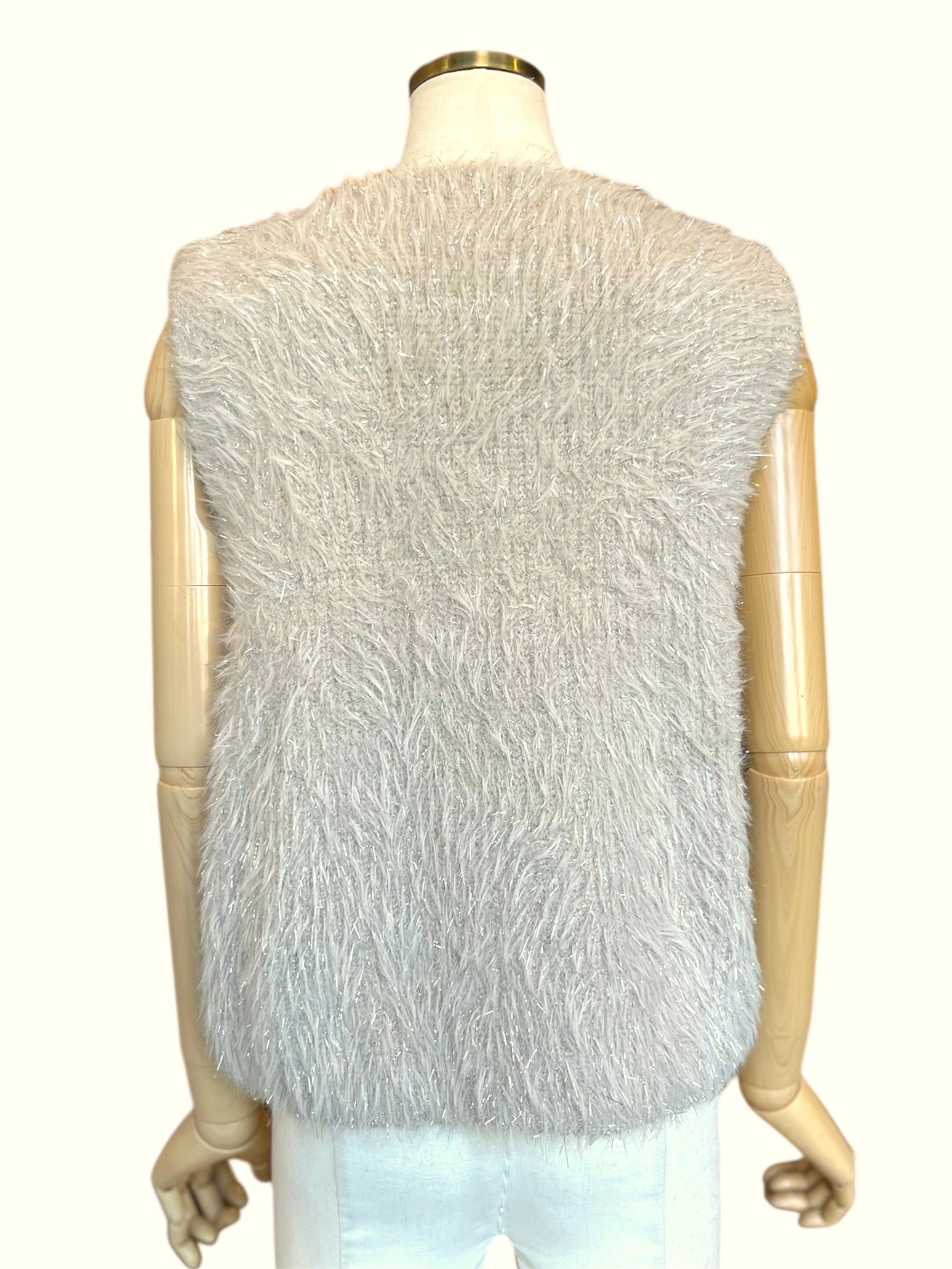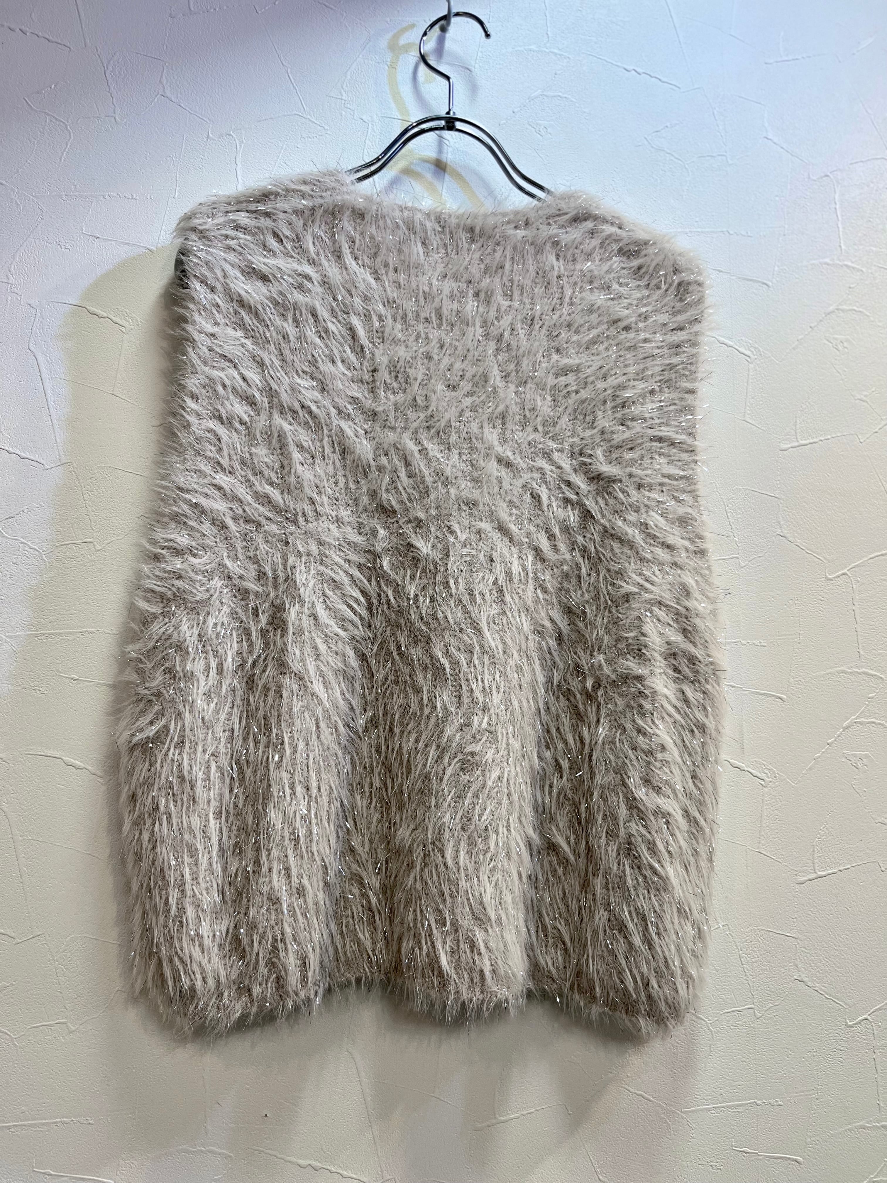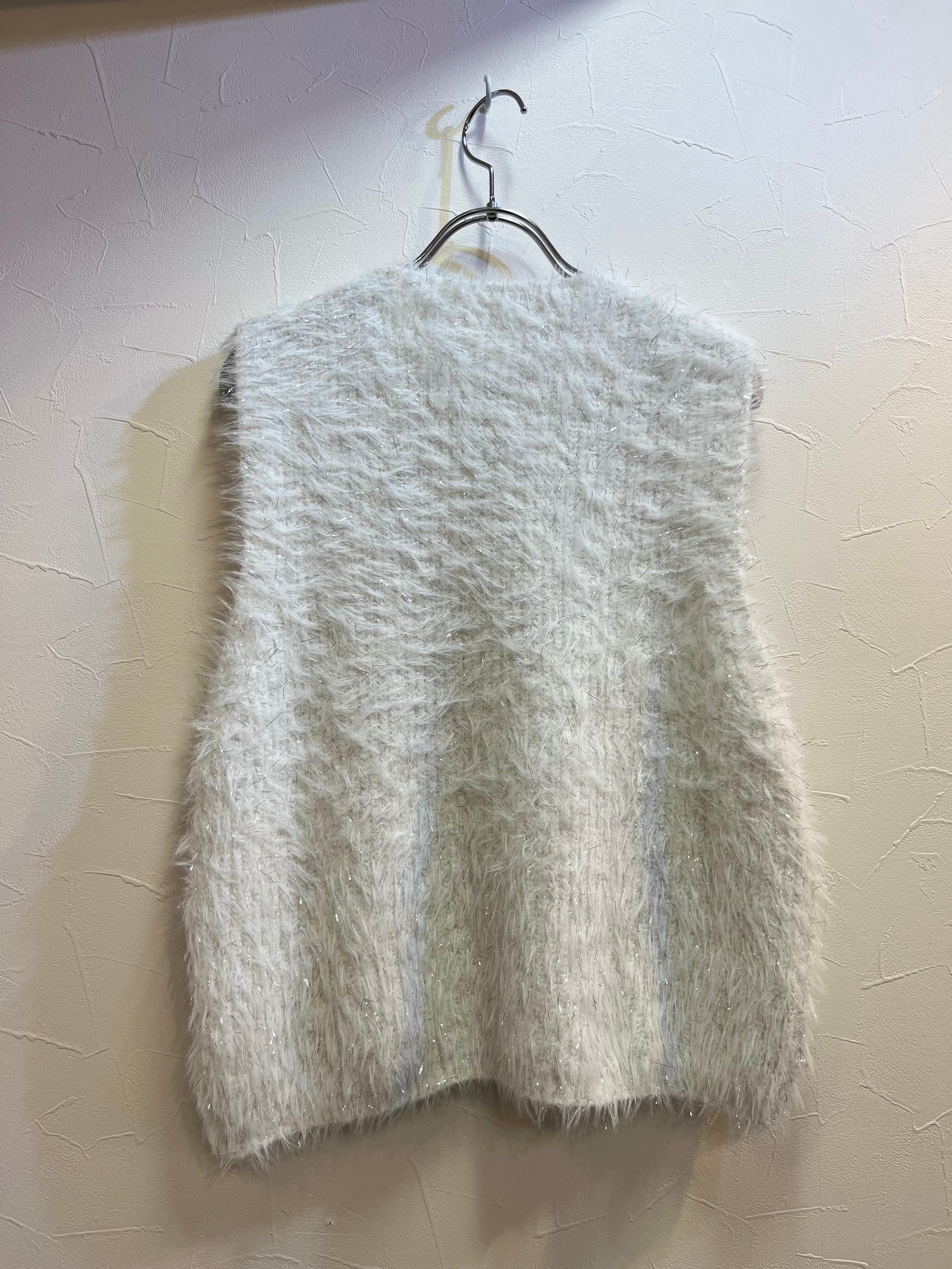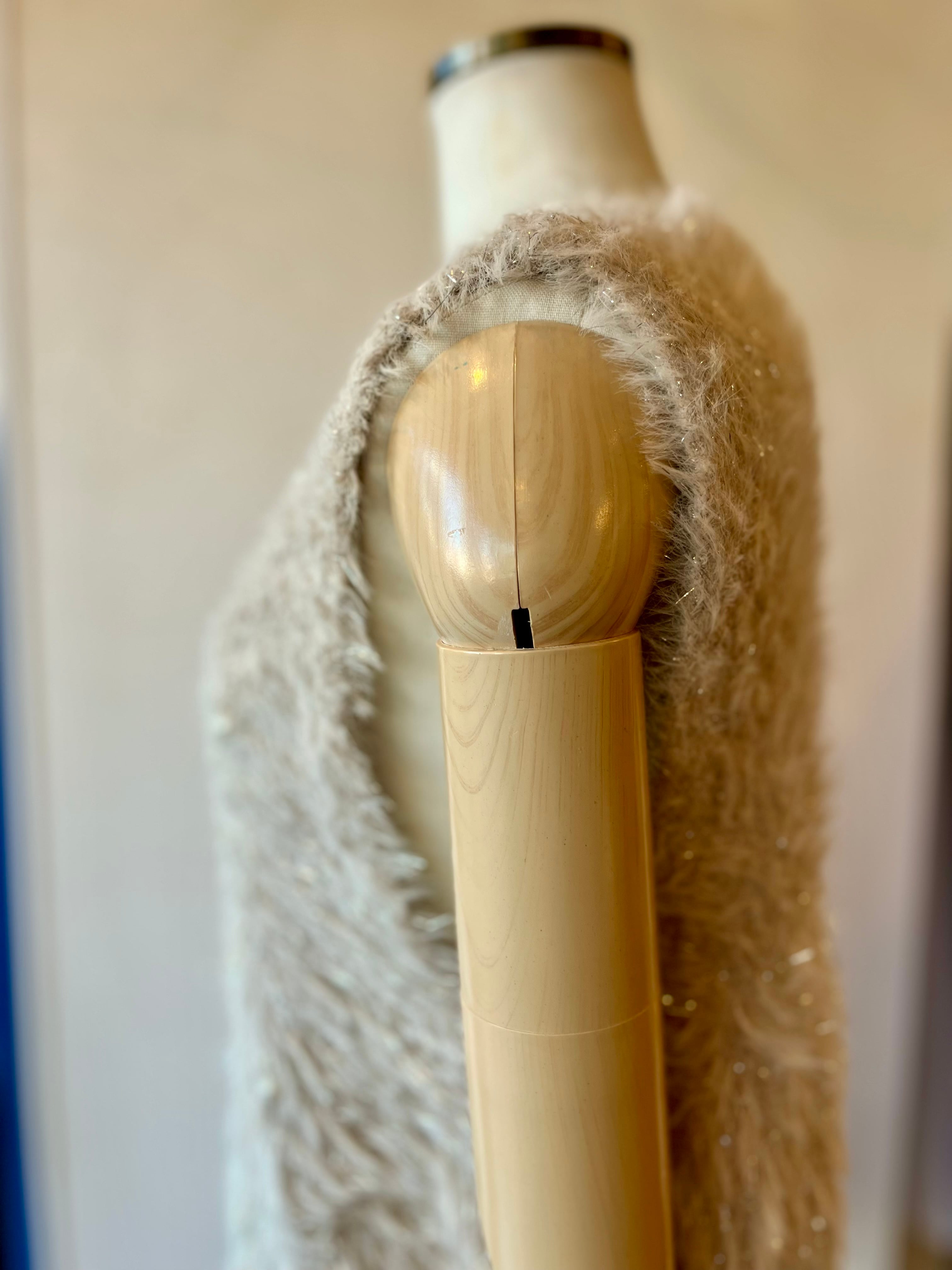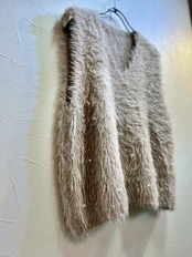 ふんわり柔らかなフェザーニットにきらめくラメ糸を織り交ぜた上品なベスト。