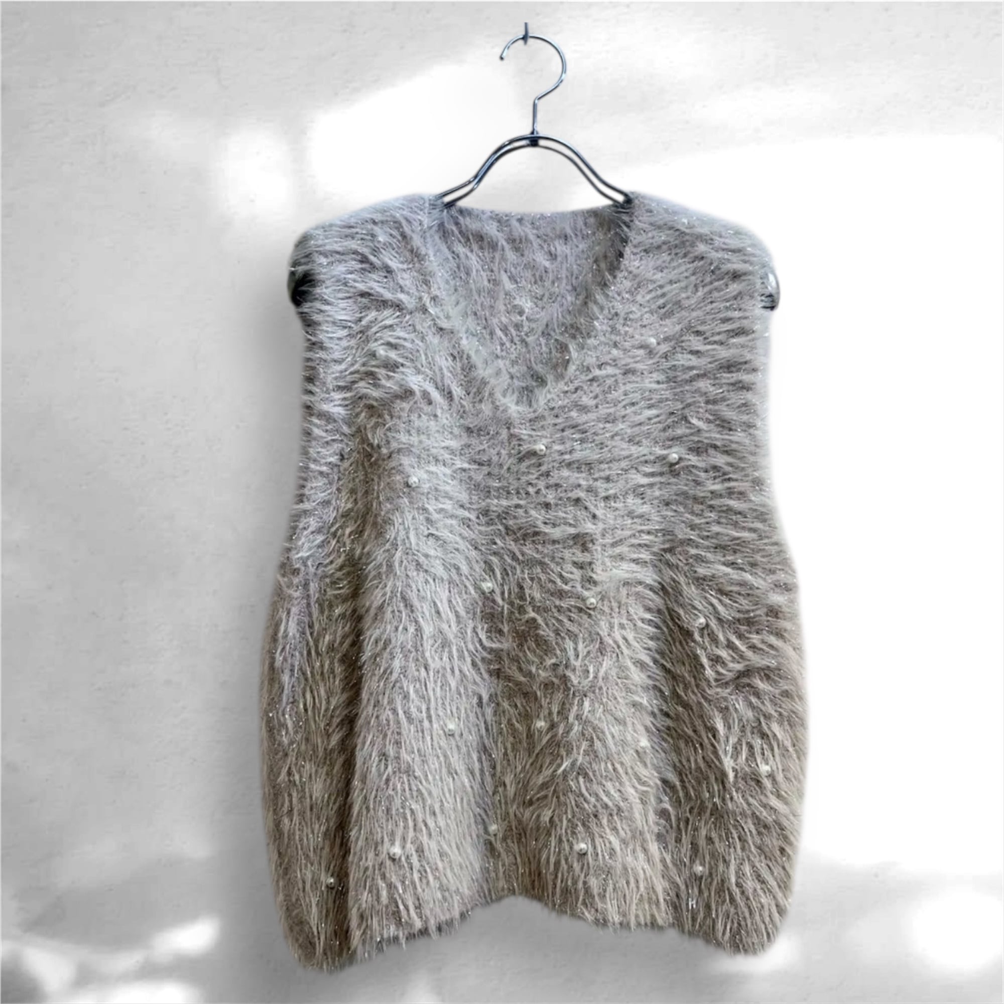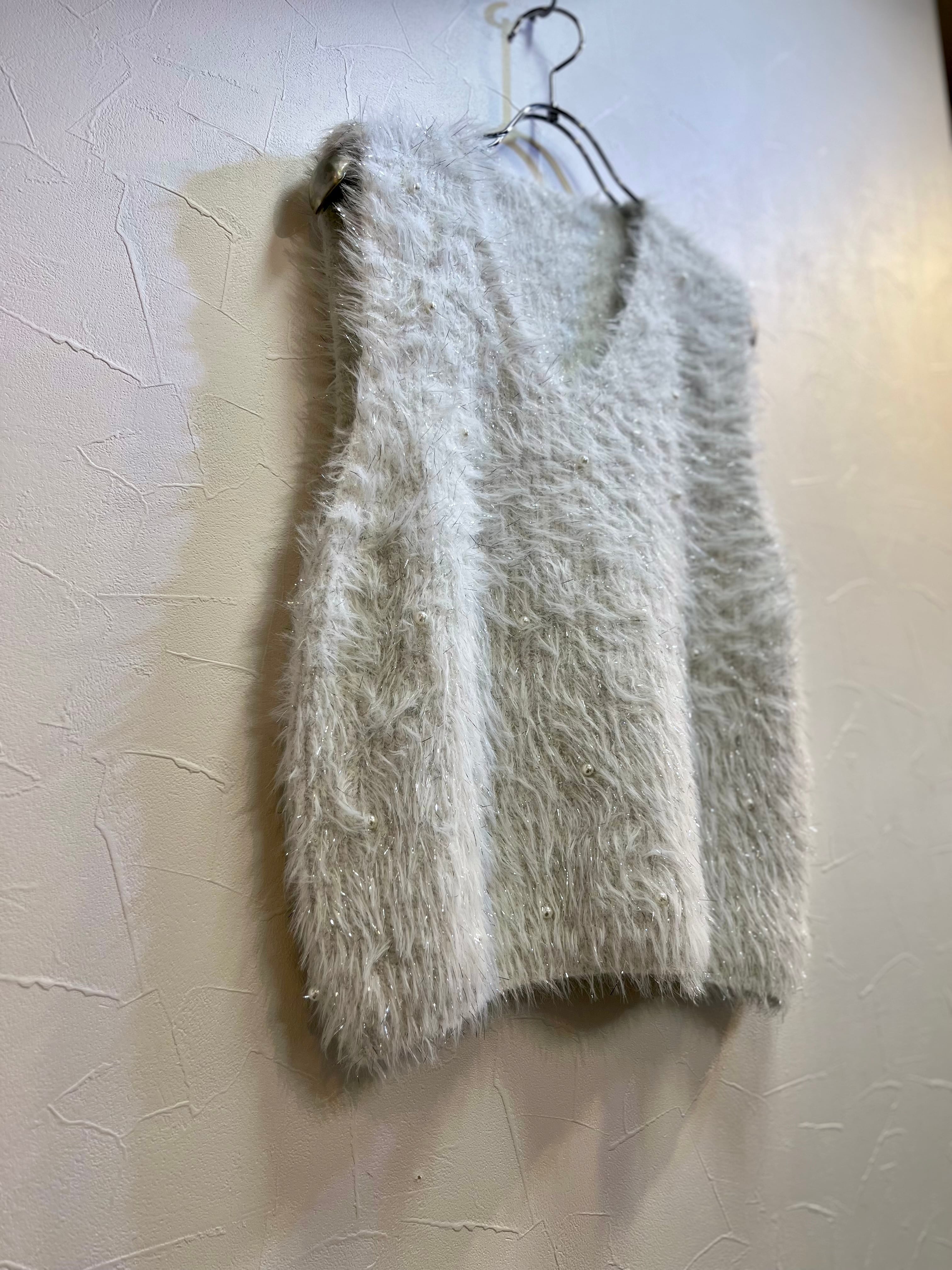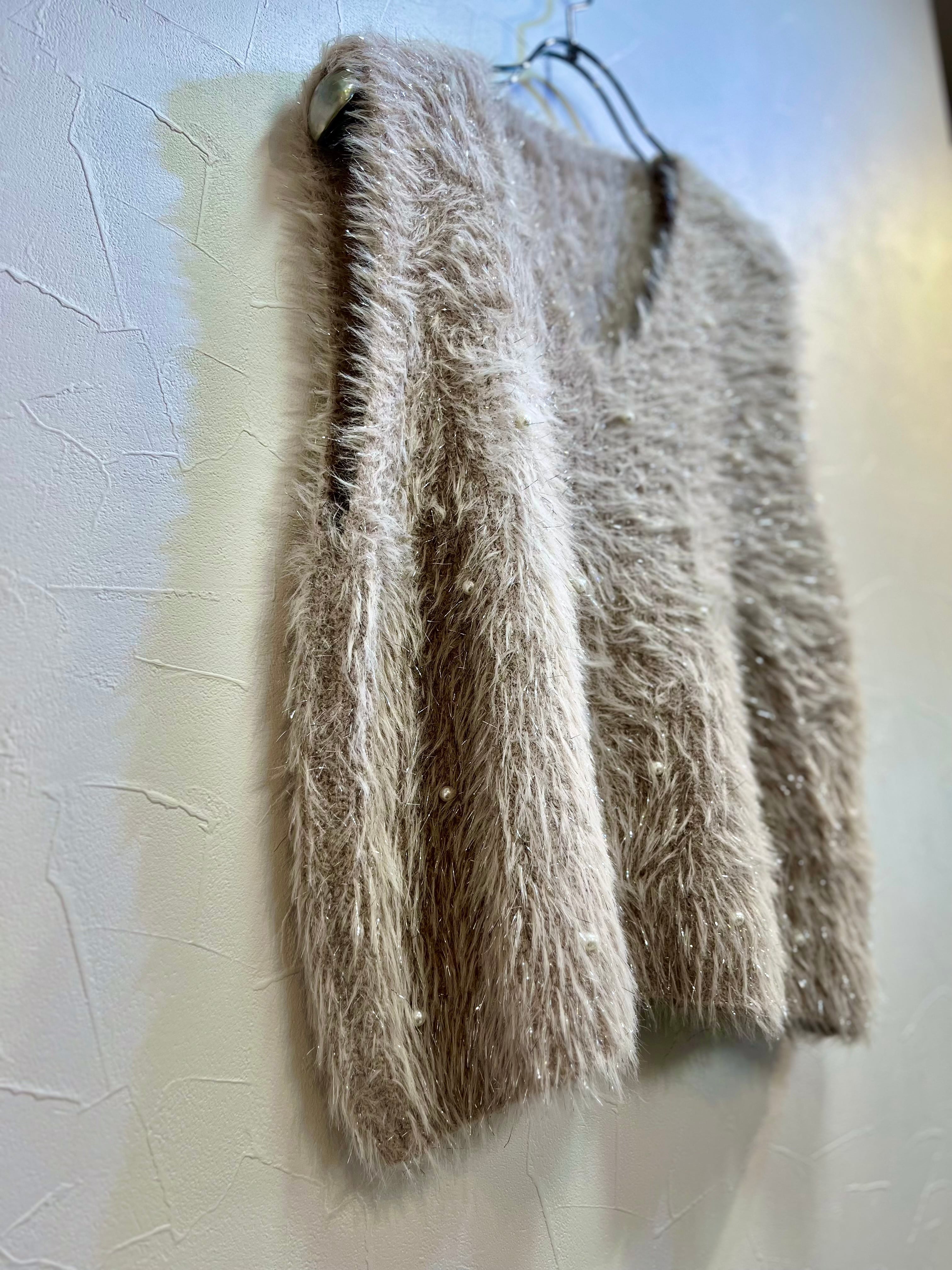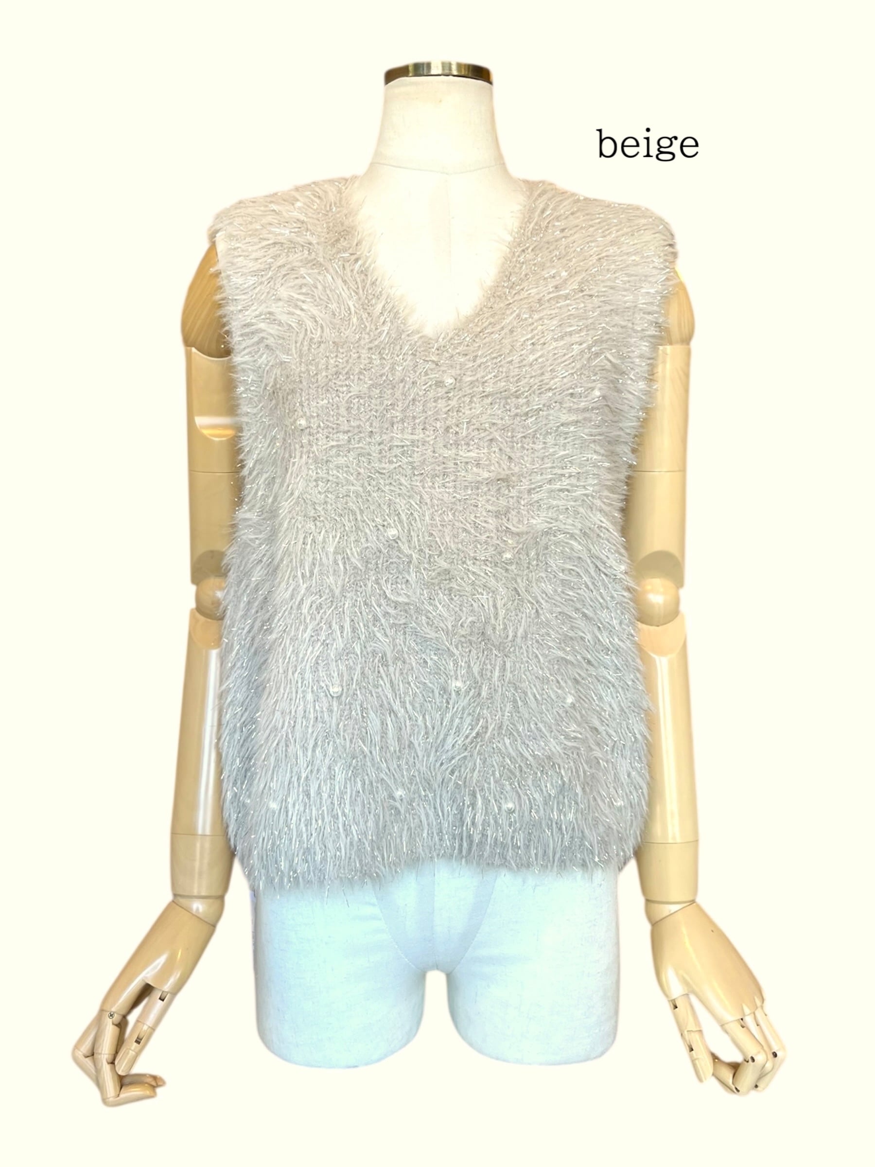 さりげなくパール付き♡ラメ糸混フェザーニットベスト