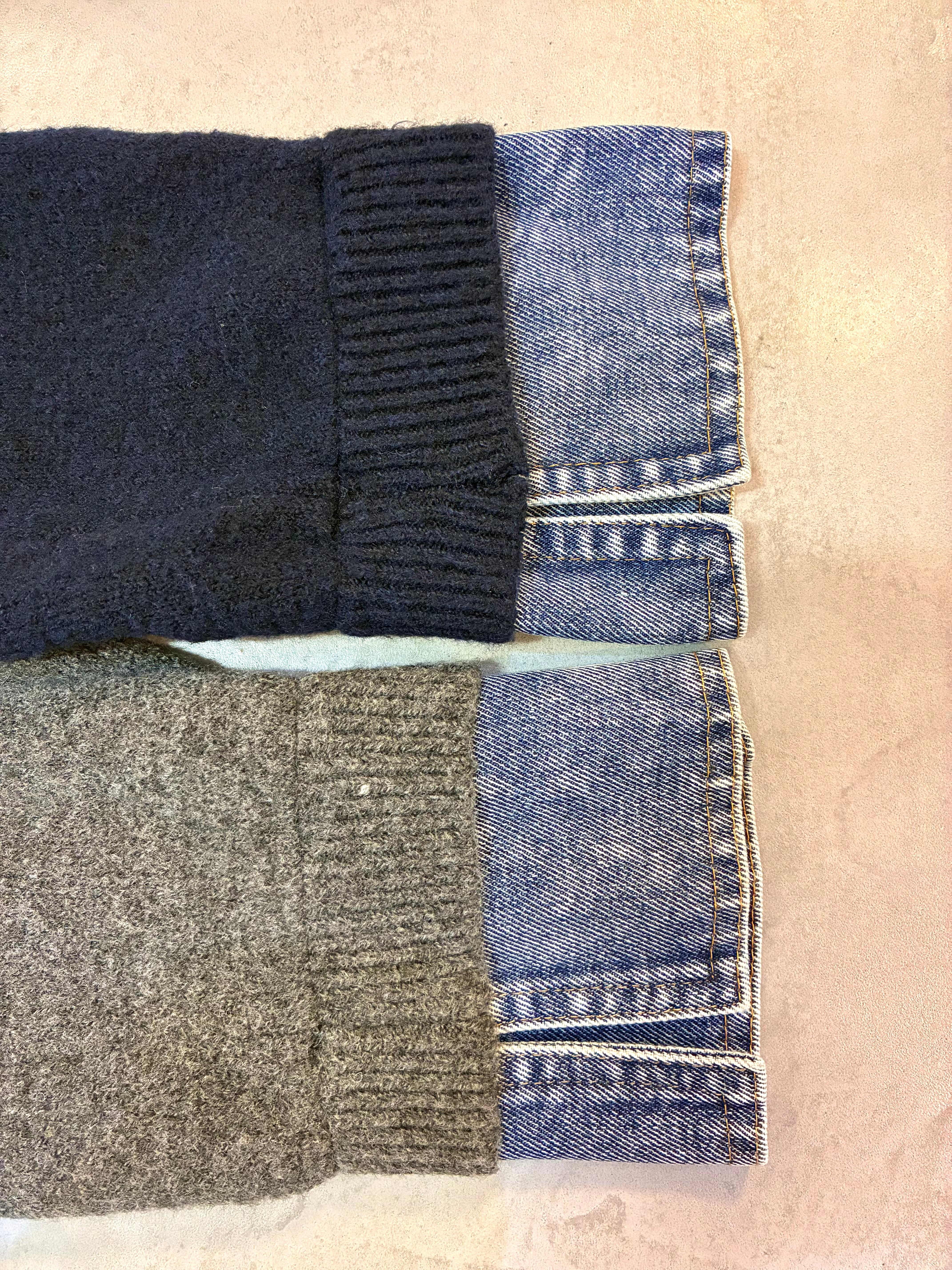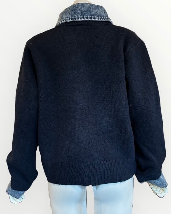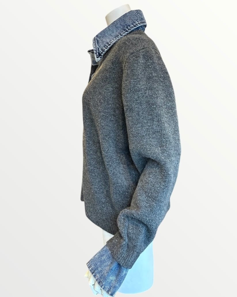 まるでデニムシャツの上にニットカーディガンを羽織っているかのような