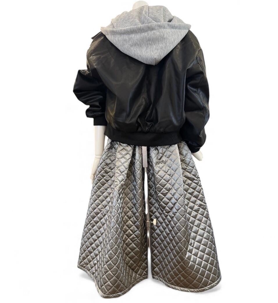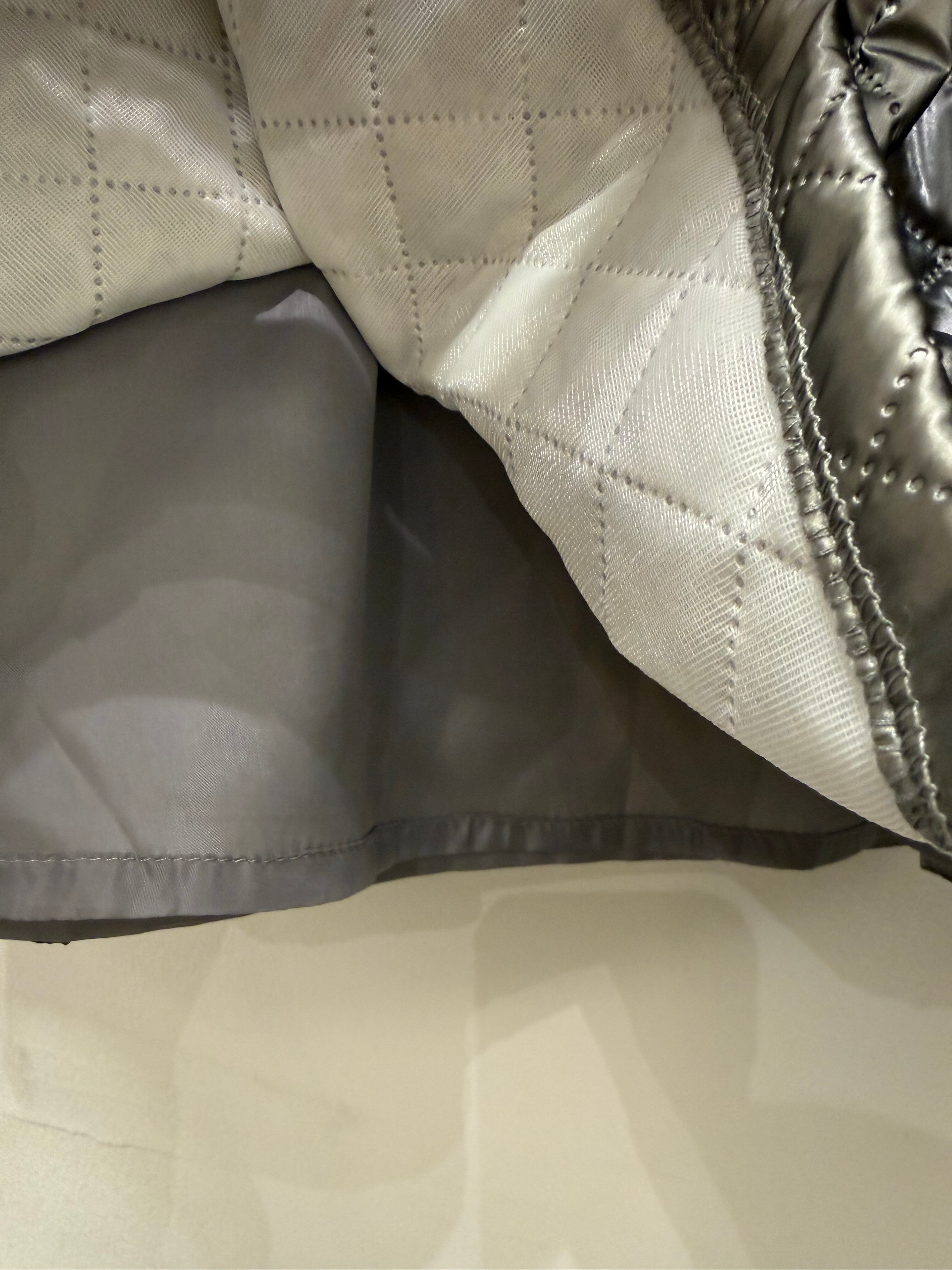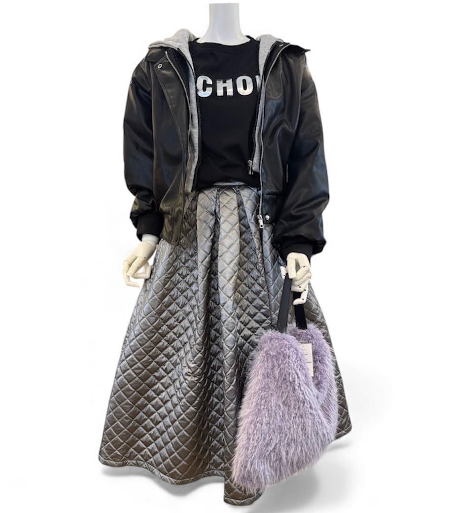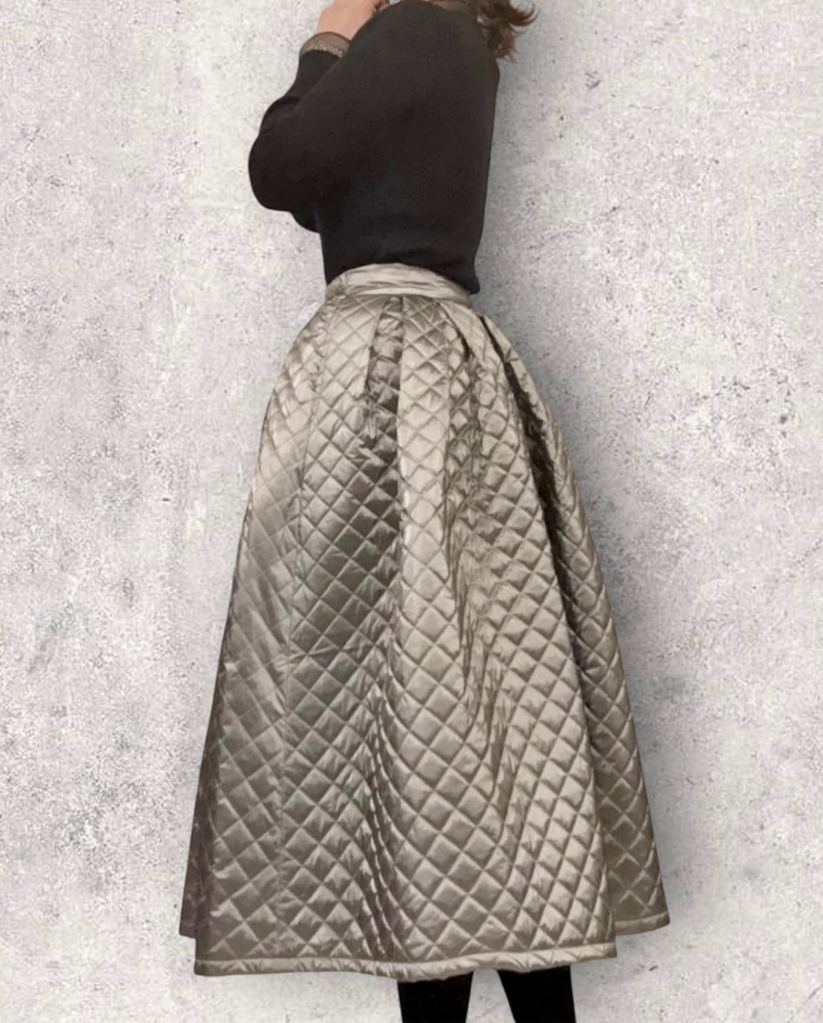 ラグジュアリーなシルバーが美しい、キルティング・フレアスカート。