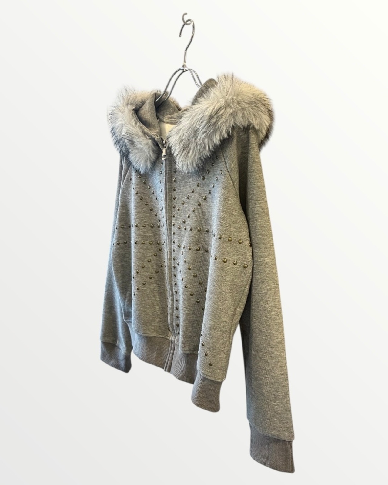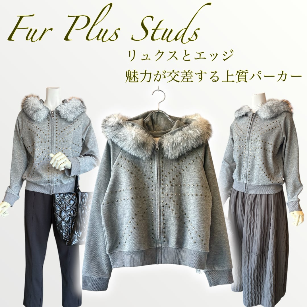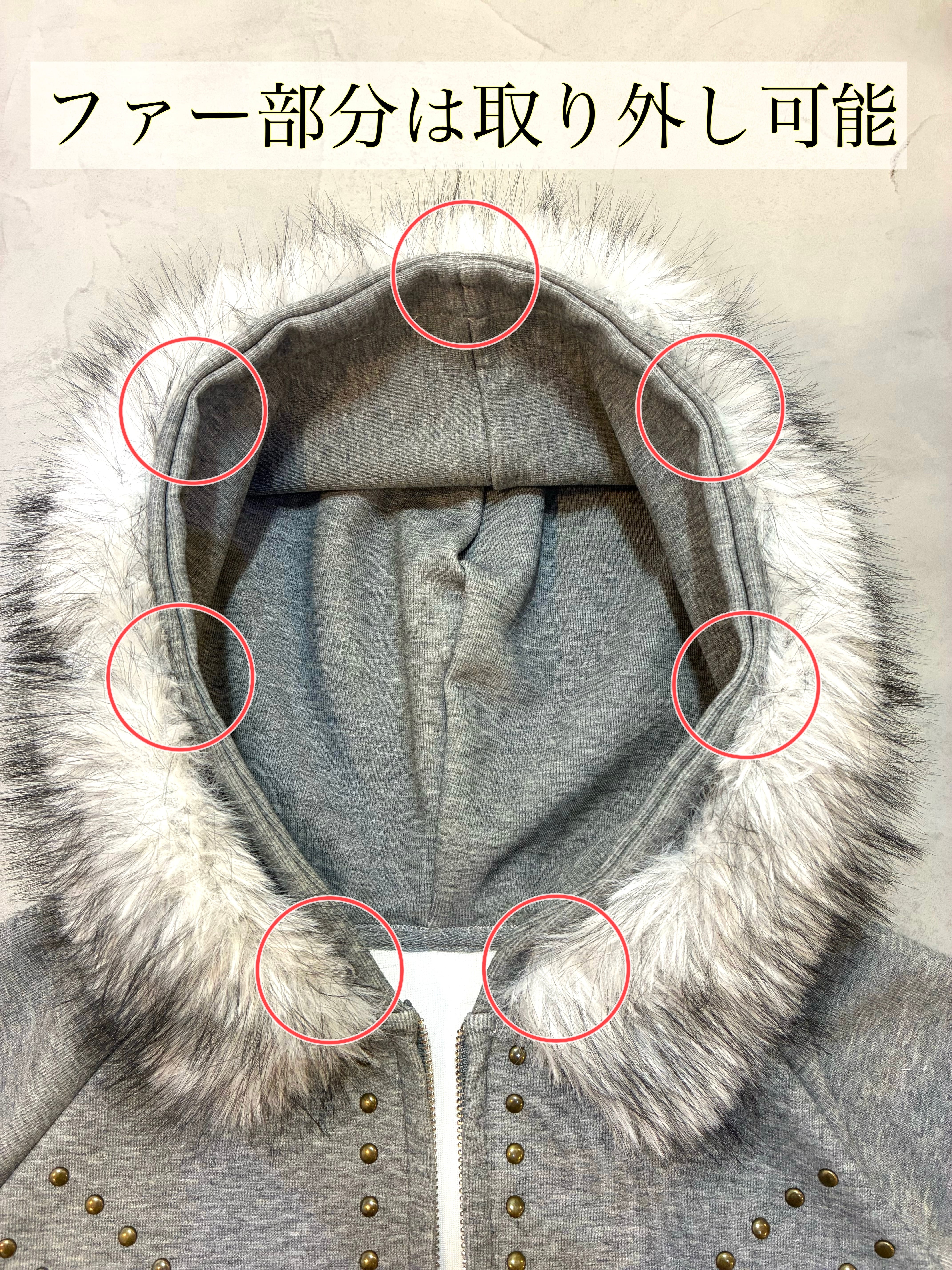 『ファー』と『スタッズ』異なる2つの要素で魅せるジップアップパーカーです。