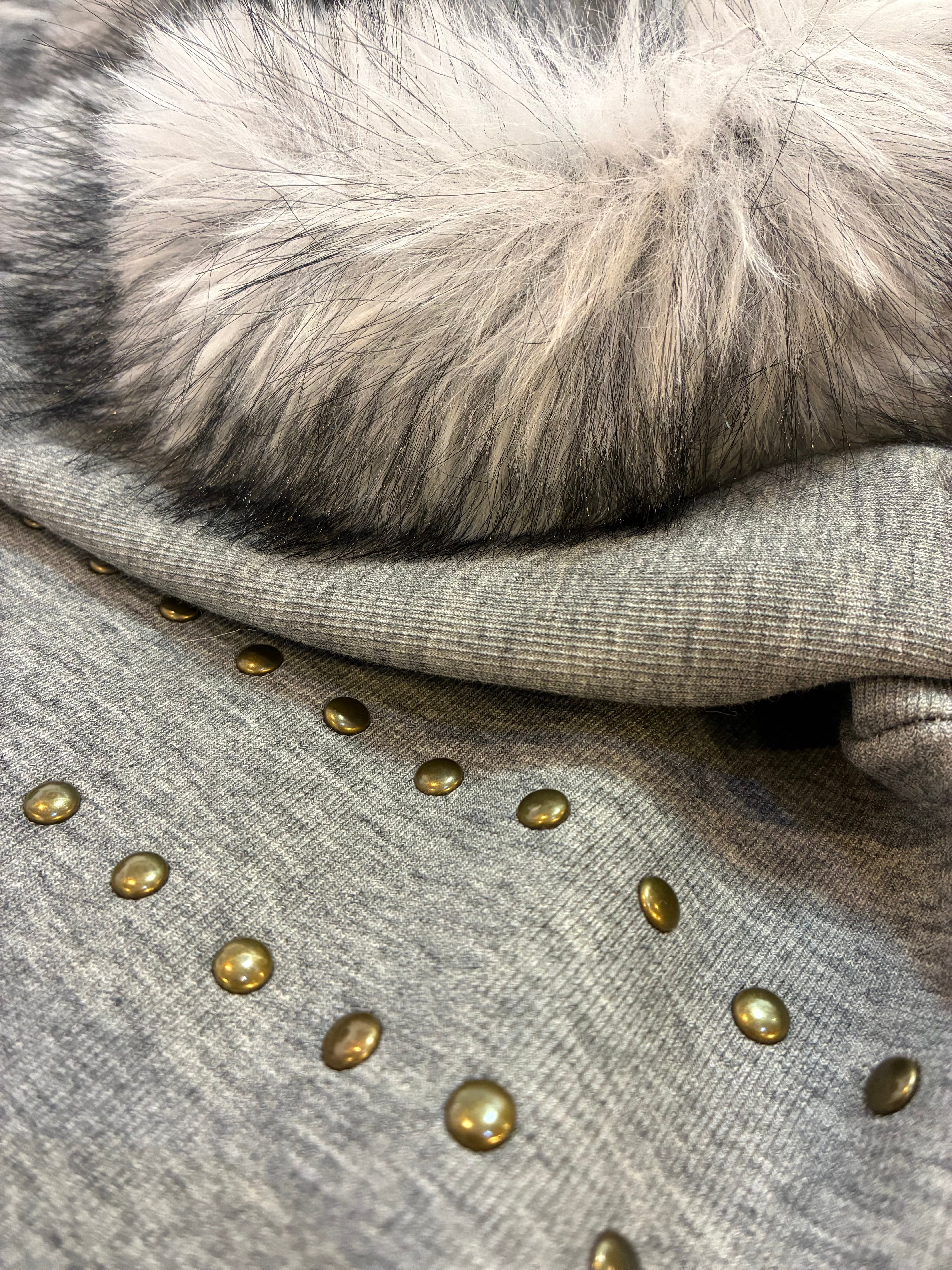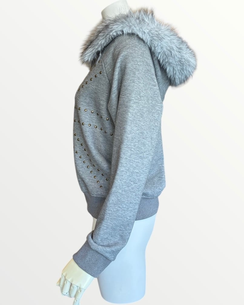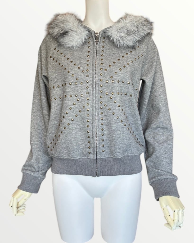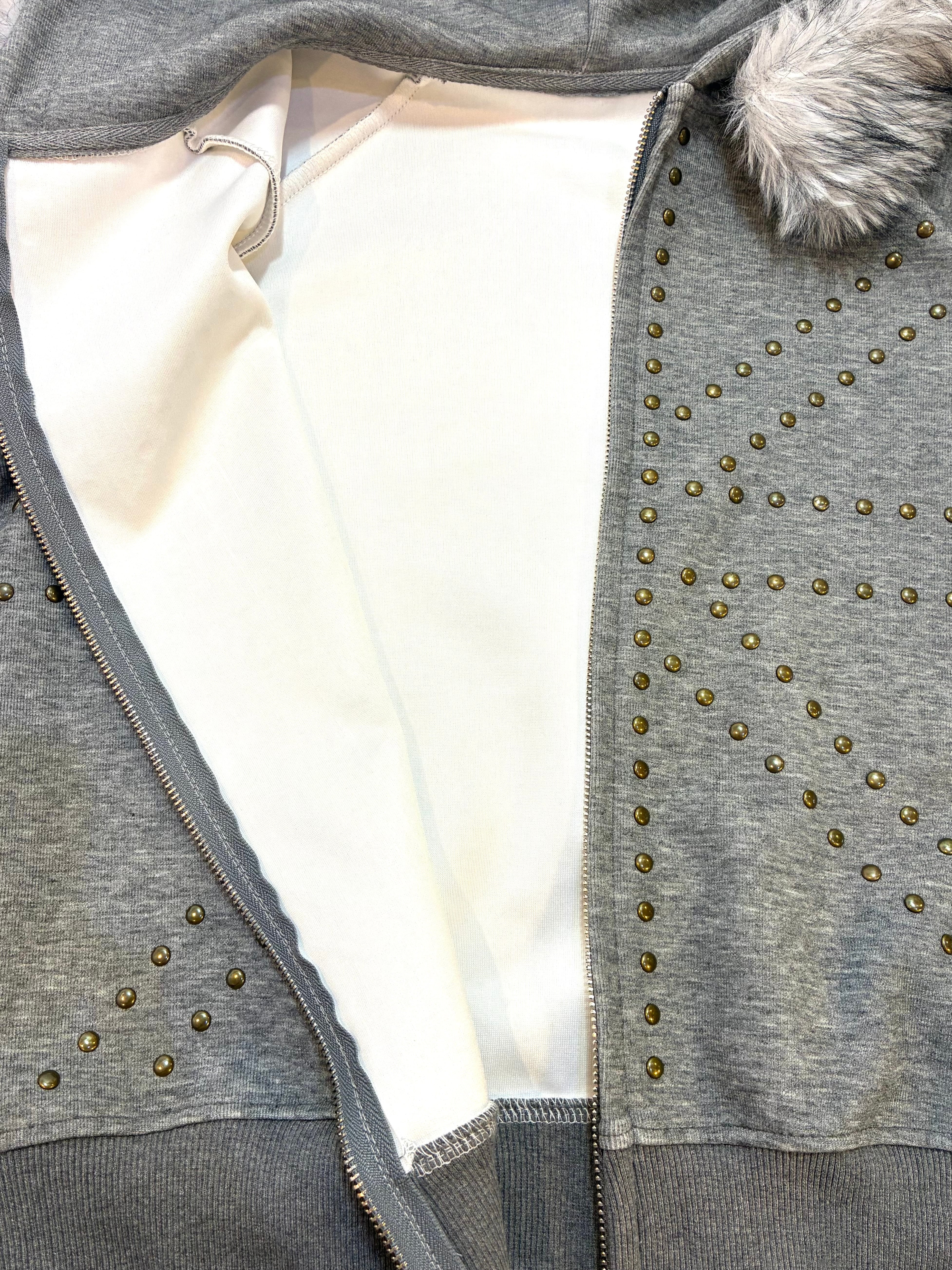 『ファー』と『スタッズ』異なる2つの要素で魅せるジップアップパーカーです。
