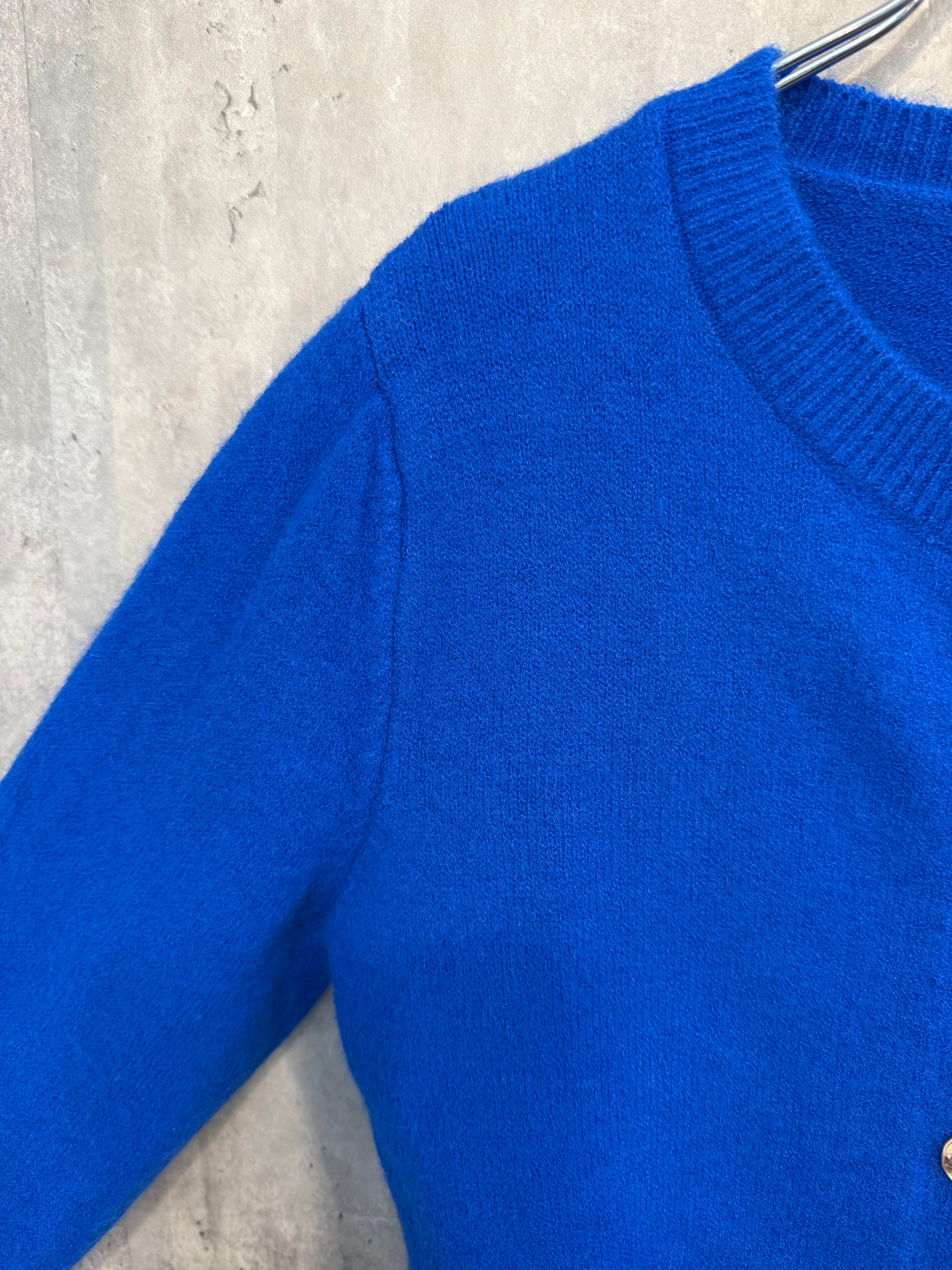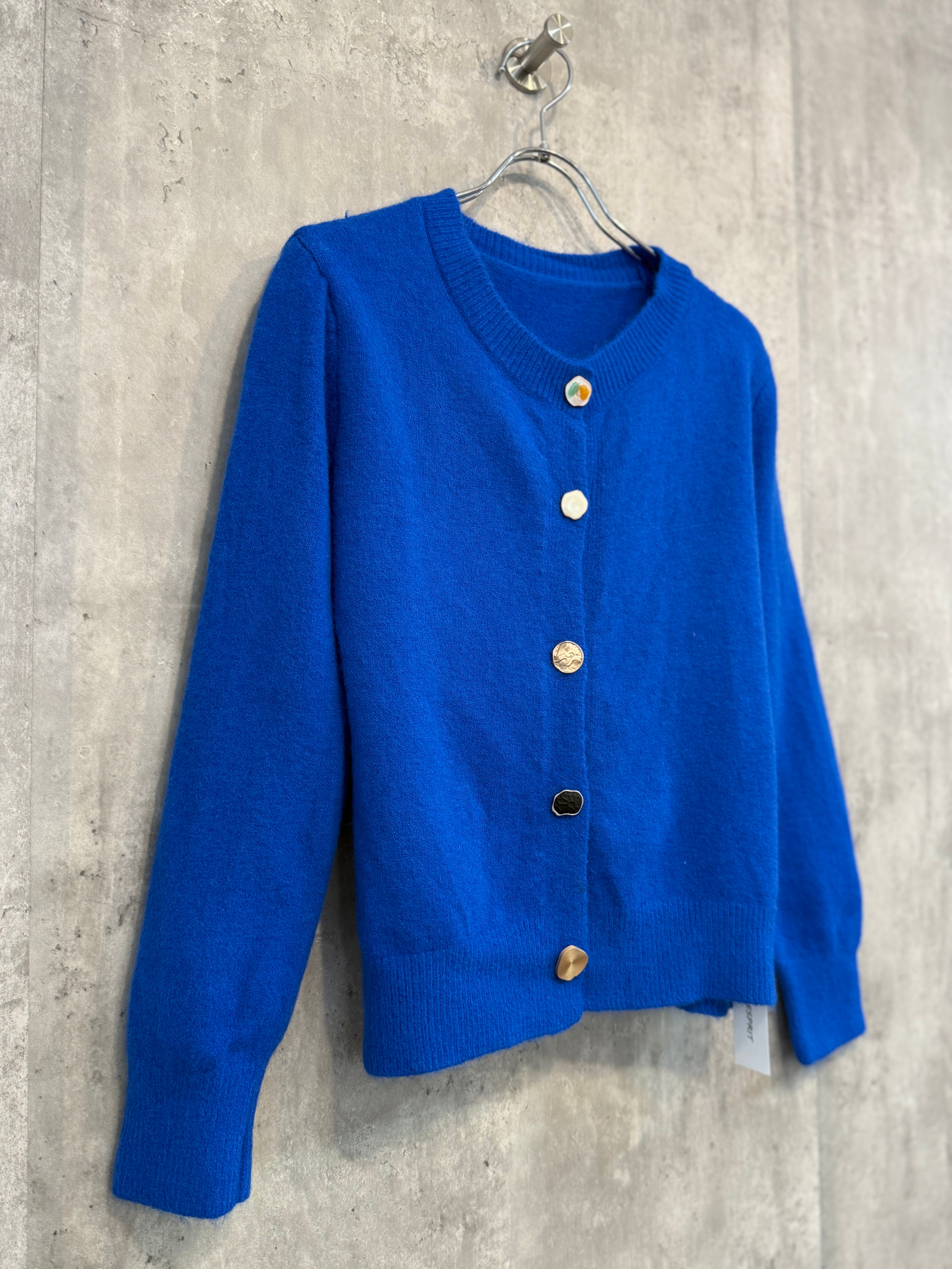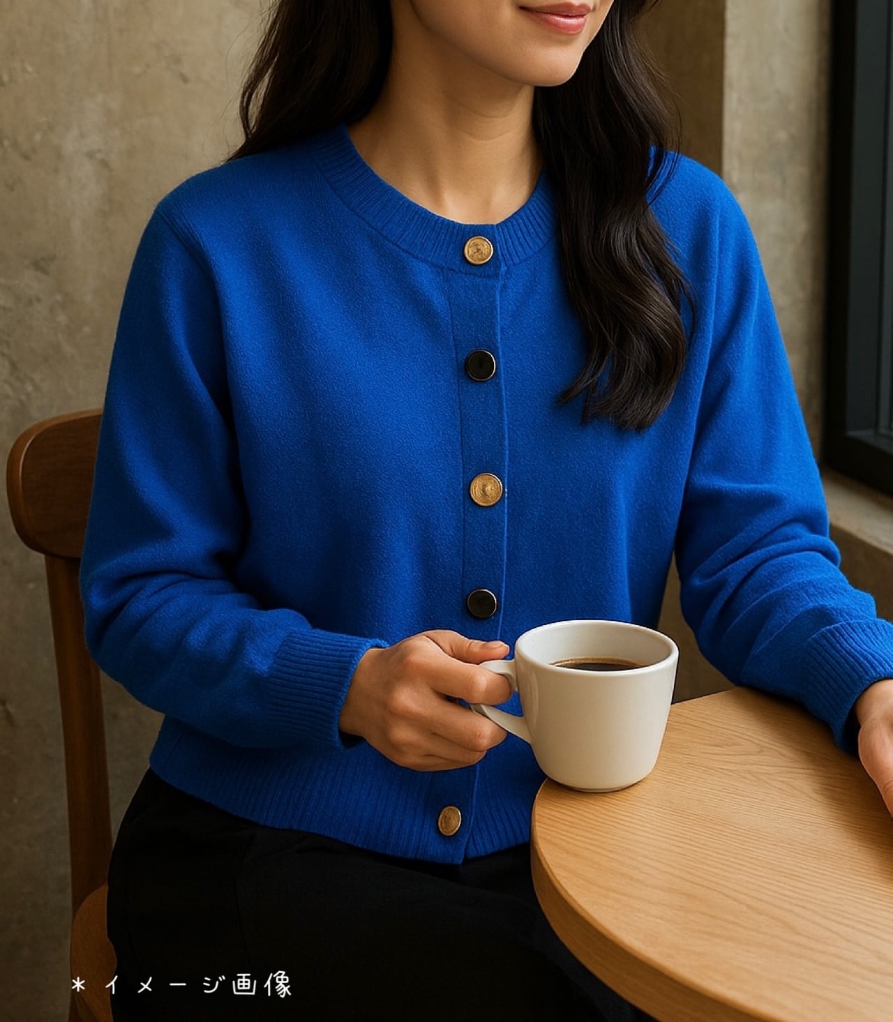 鮮やかなロイヤルブルーが目を引く、使えるニットカーディガン!