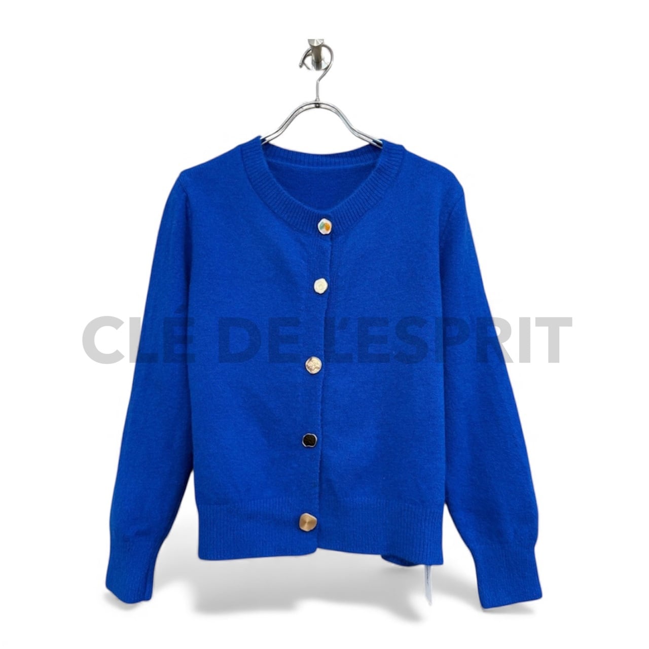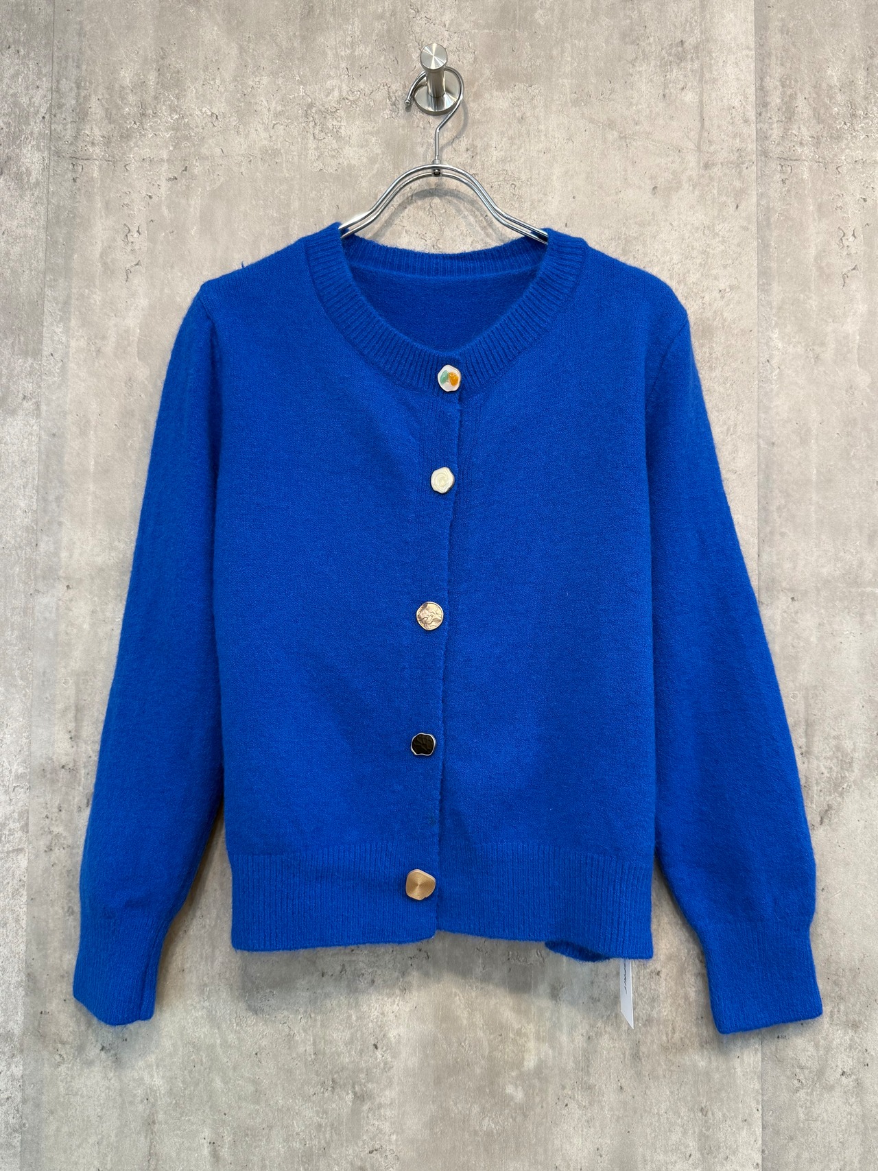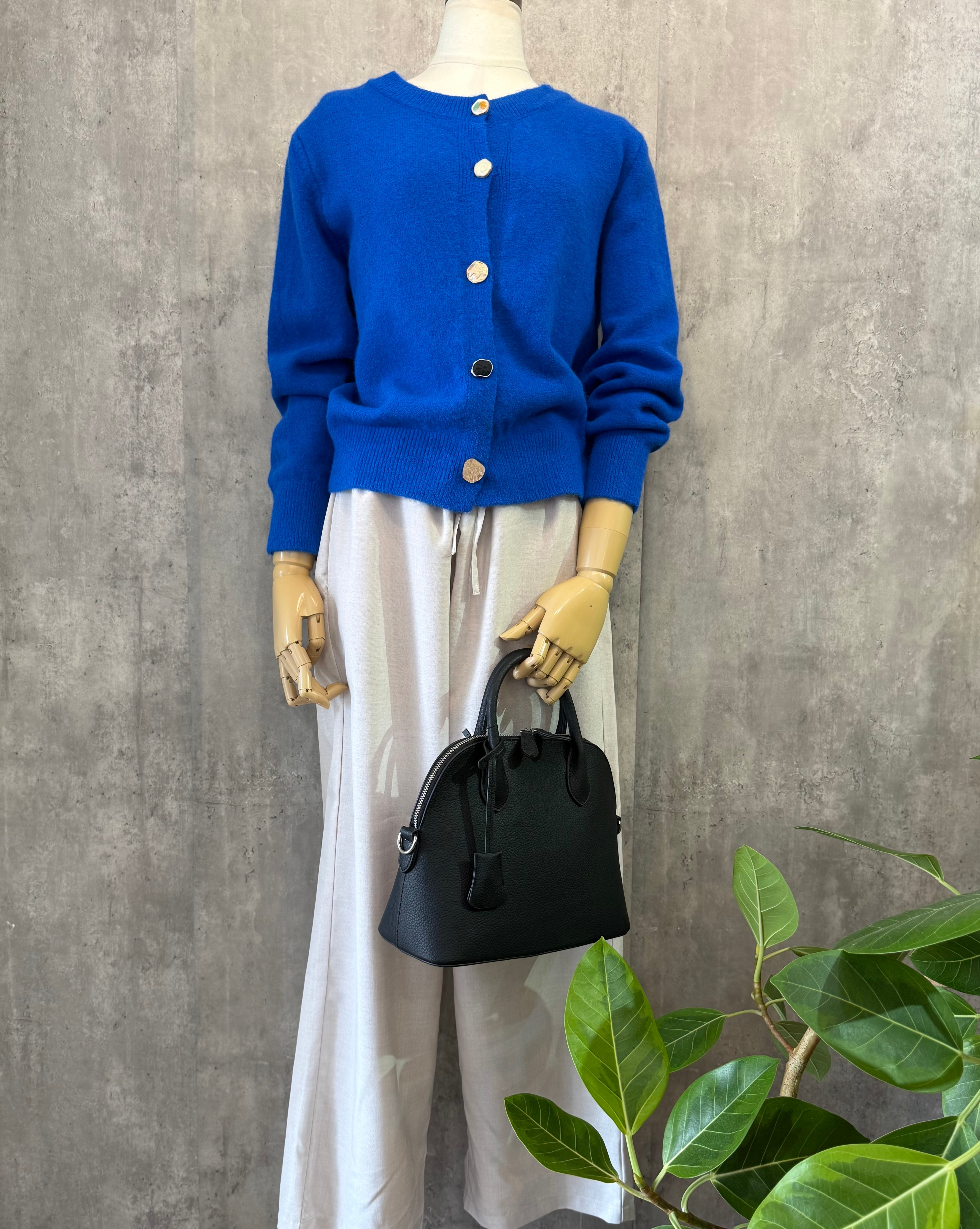 鮮やかなロイヤルブルーが目を引く、使えるニットカーディガン!