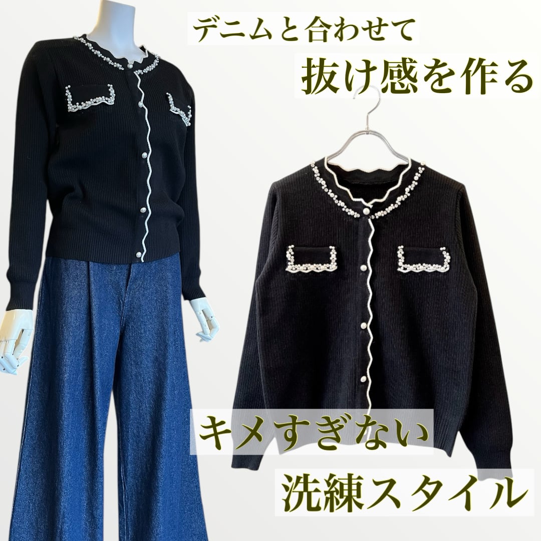 大人可愛い派♡カーディガン風ビジューニットトップス