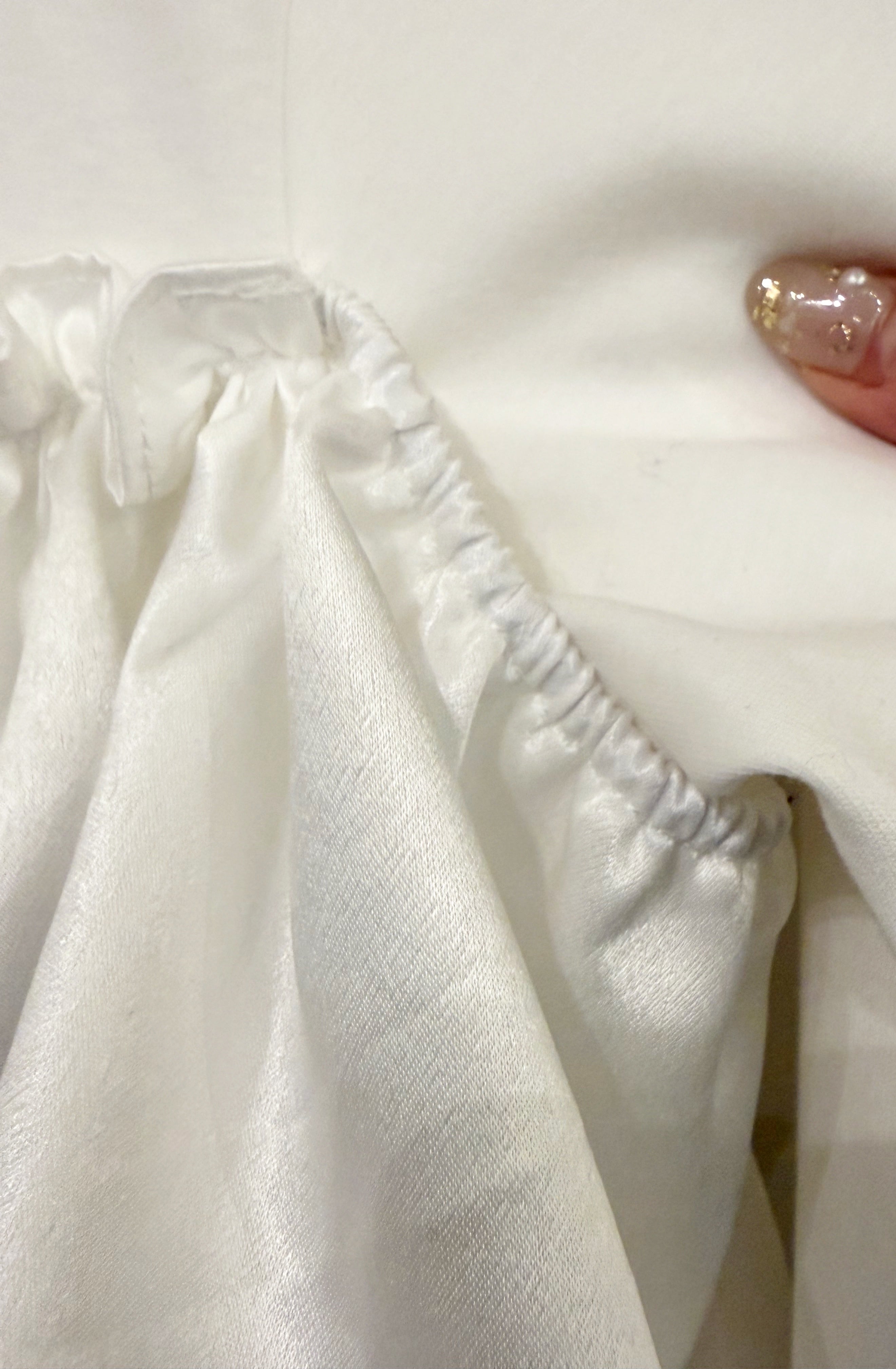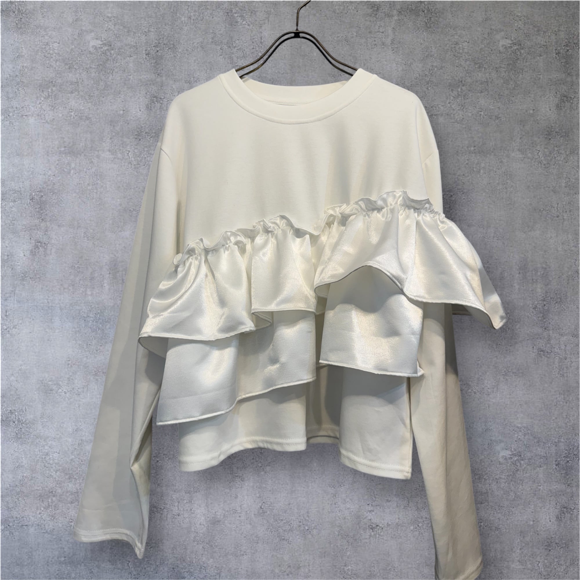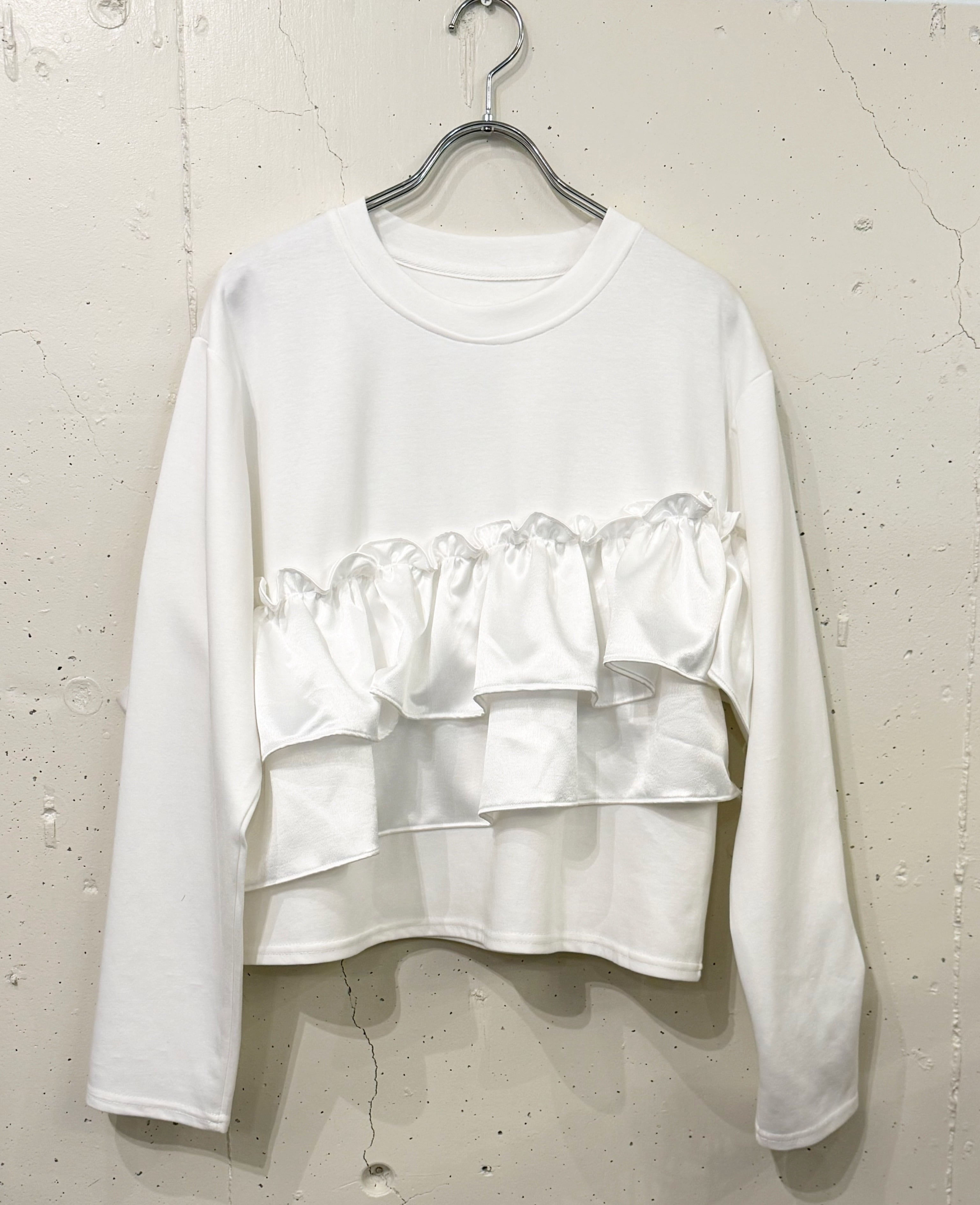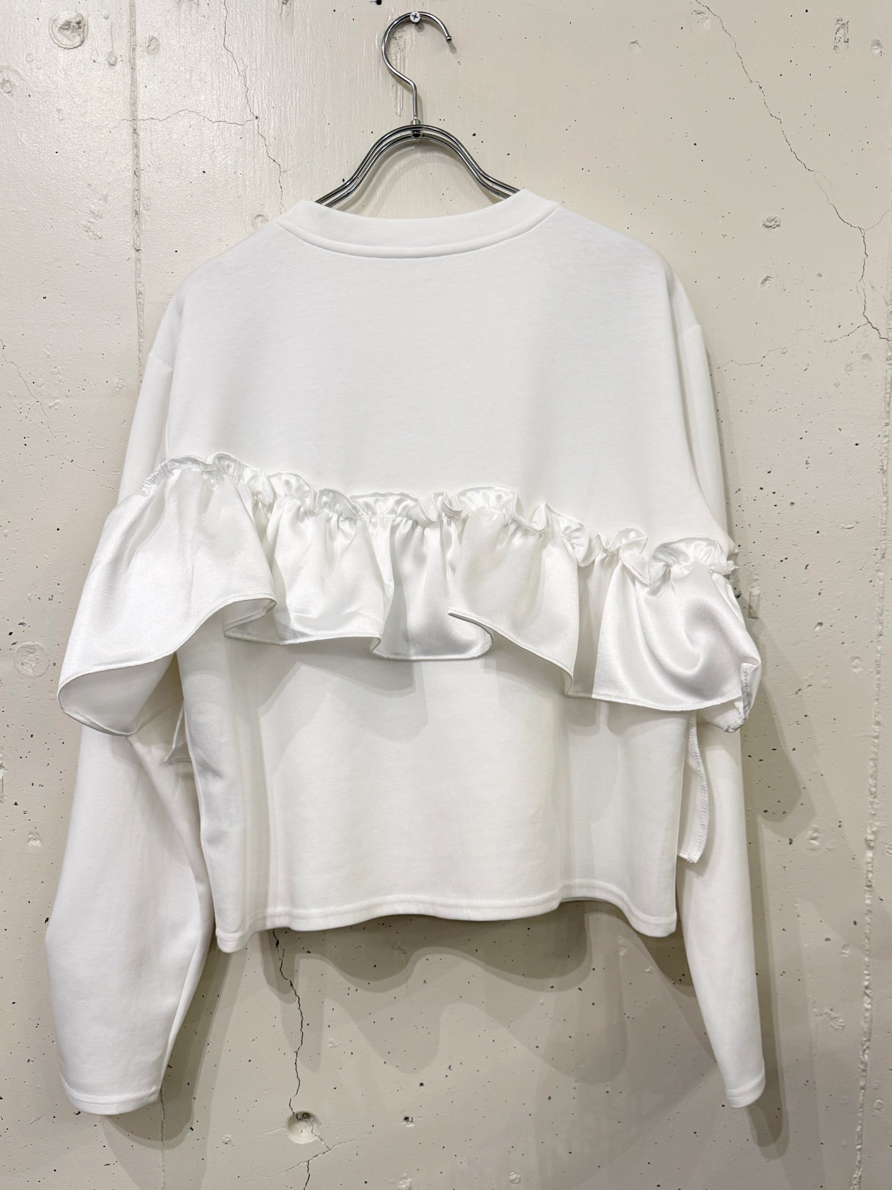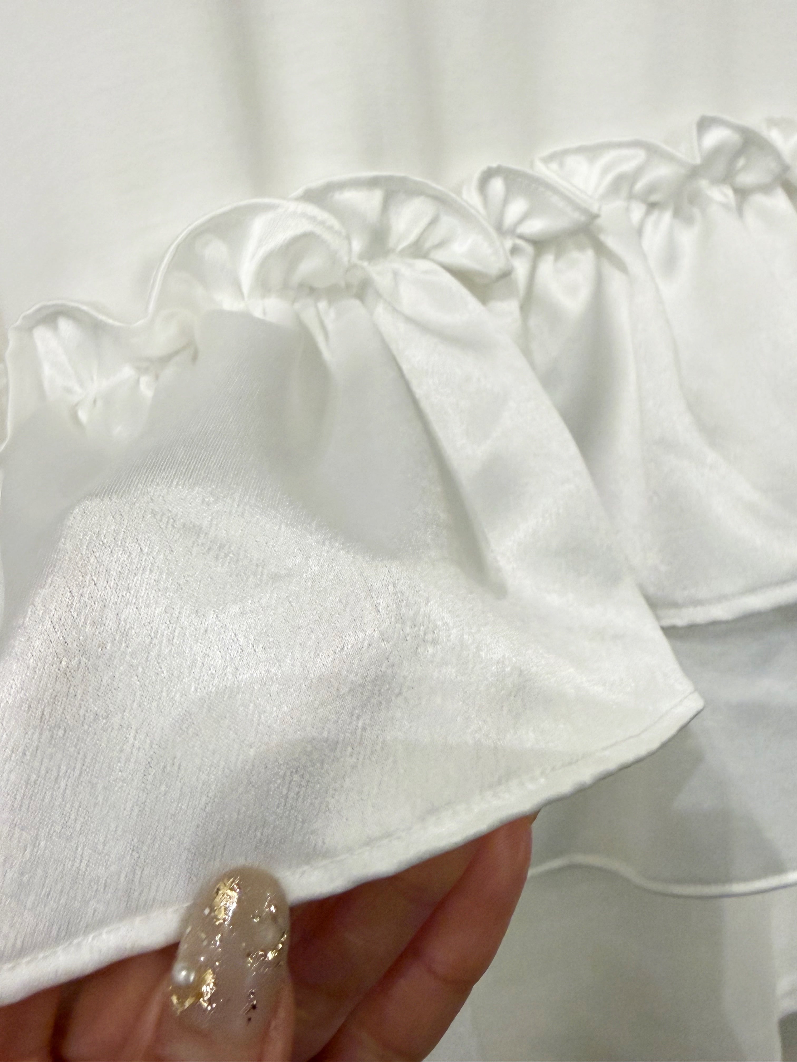 そこに、艶やかなサテンフリルを大胆にあしらい、
