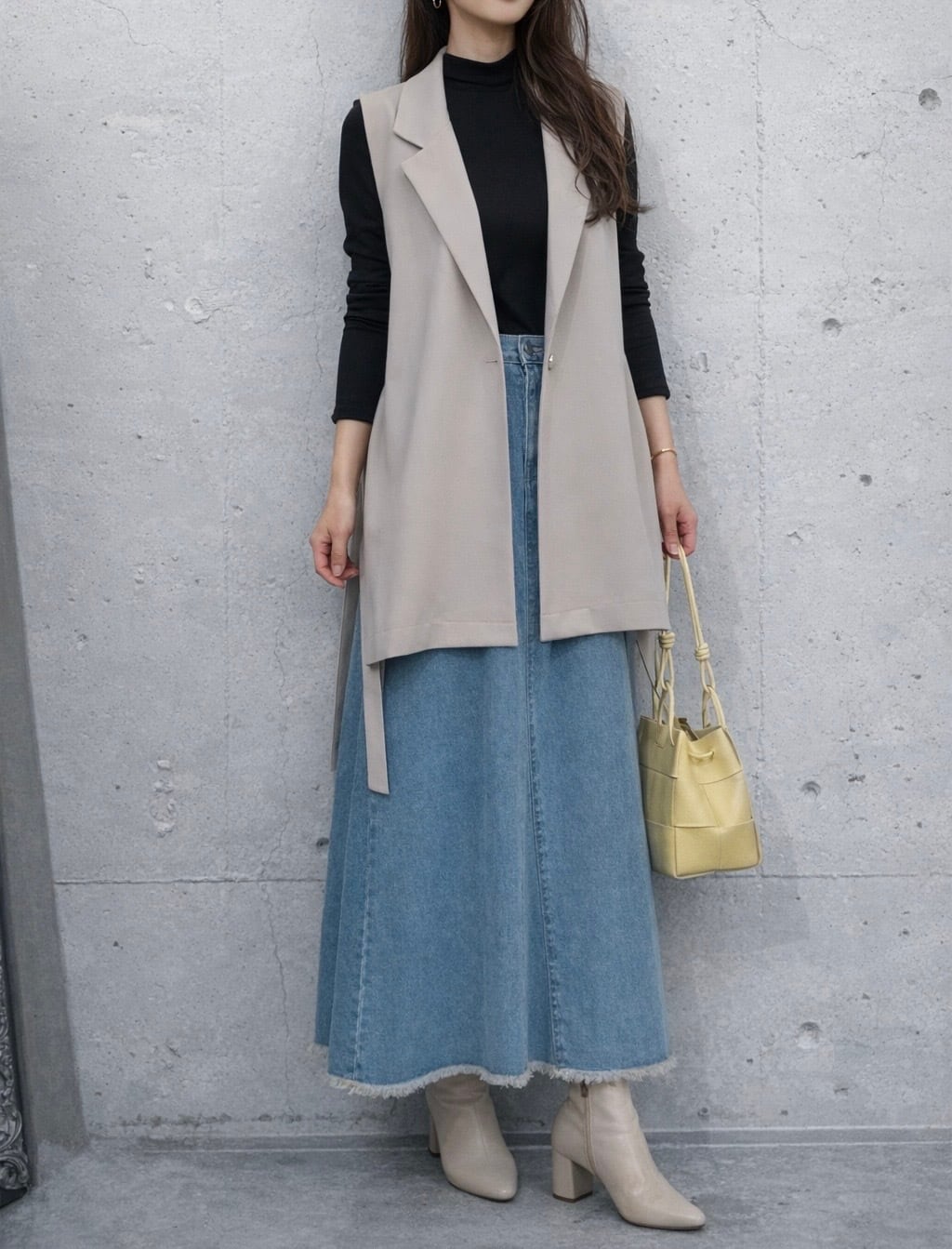 きちんと感と抜け感を両立した、大人のためのテーラードジレ。