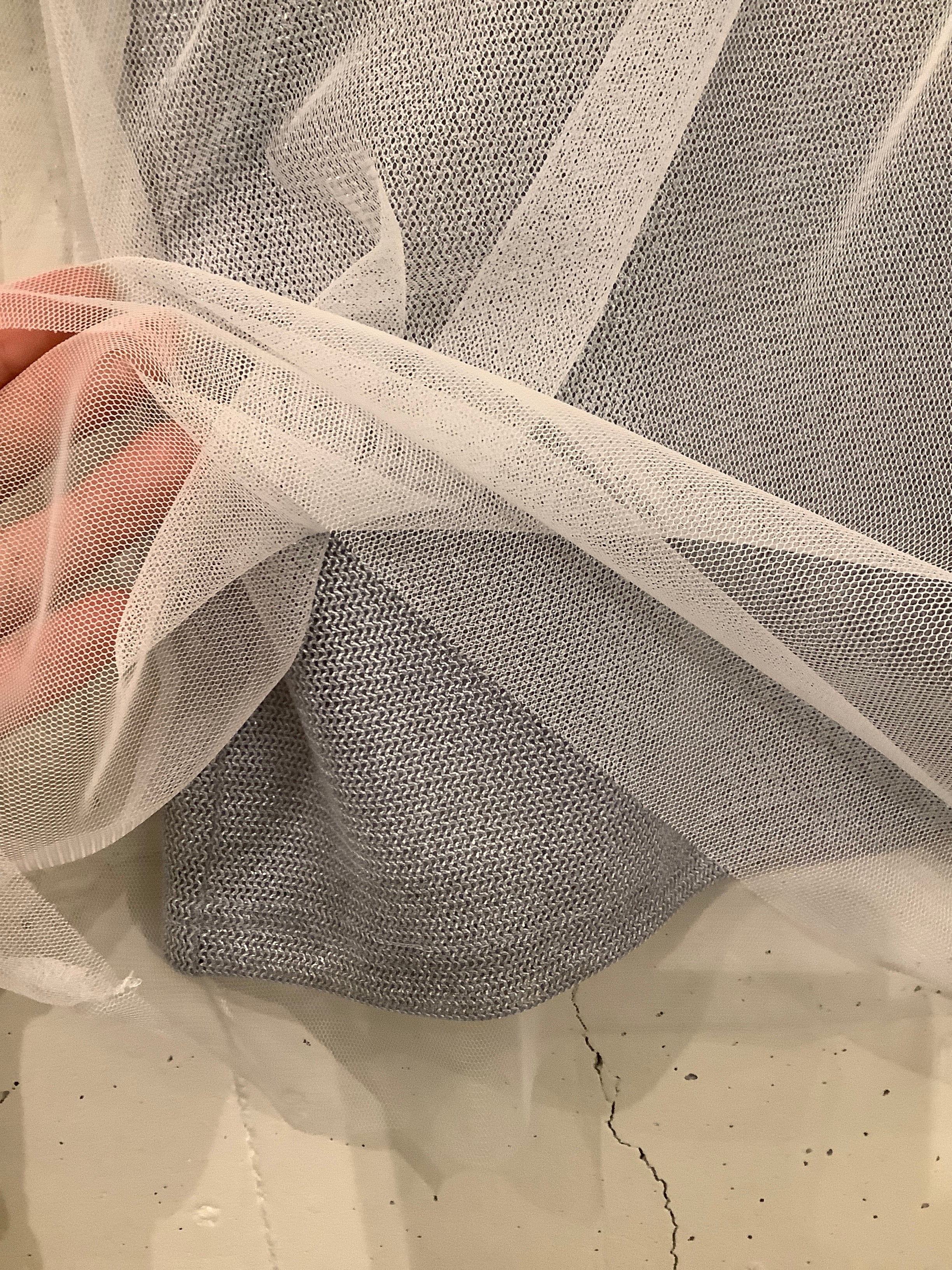 チュールメッシュ素材を重ねたデザインは今季のトレンドです。