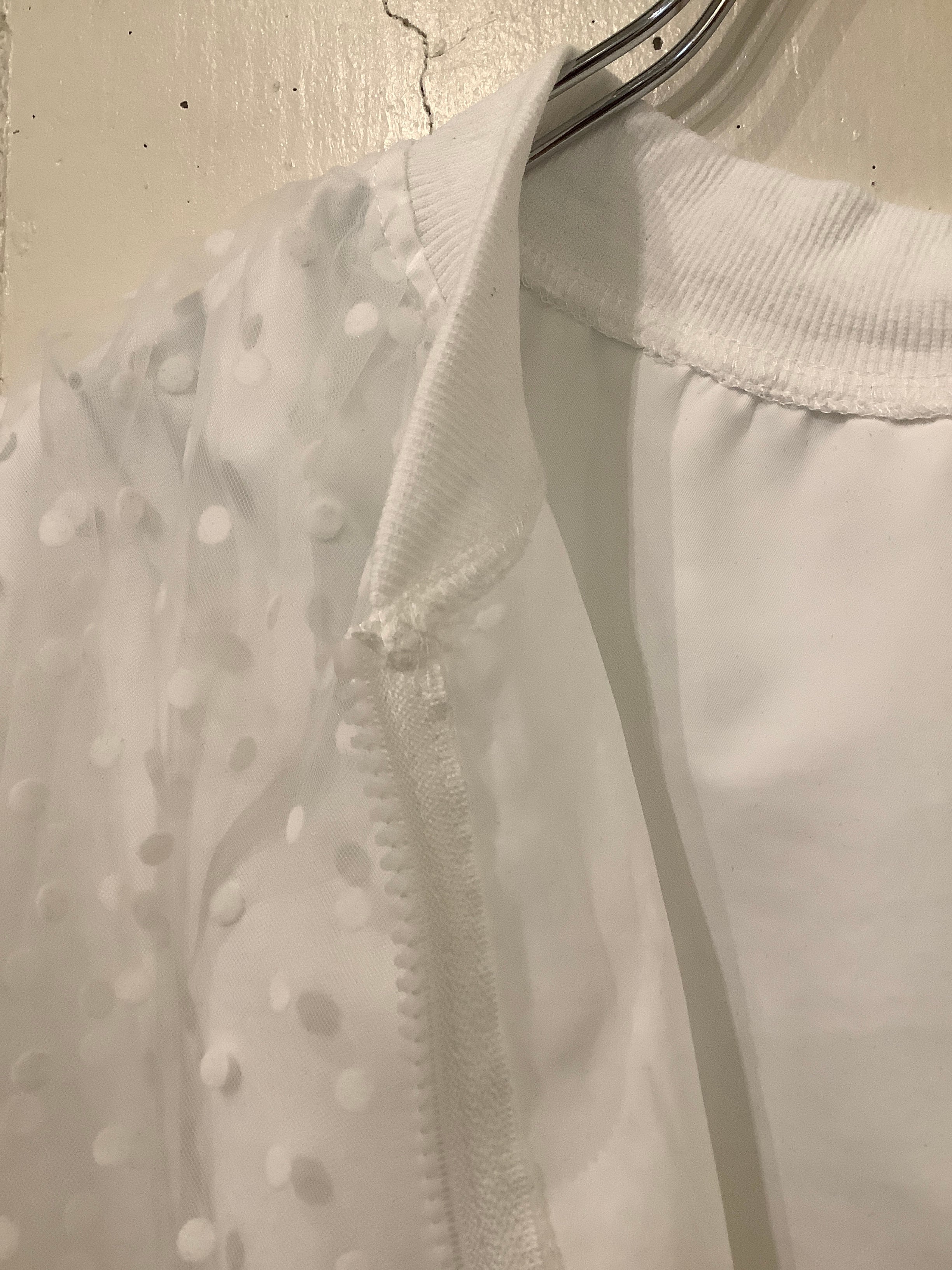 女性らしさと抜け感を演出しドット柄の刺繍で生地に膨らみや立体感を与え、