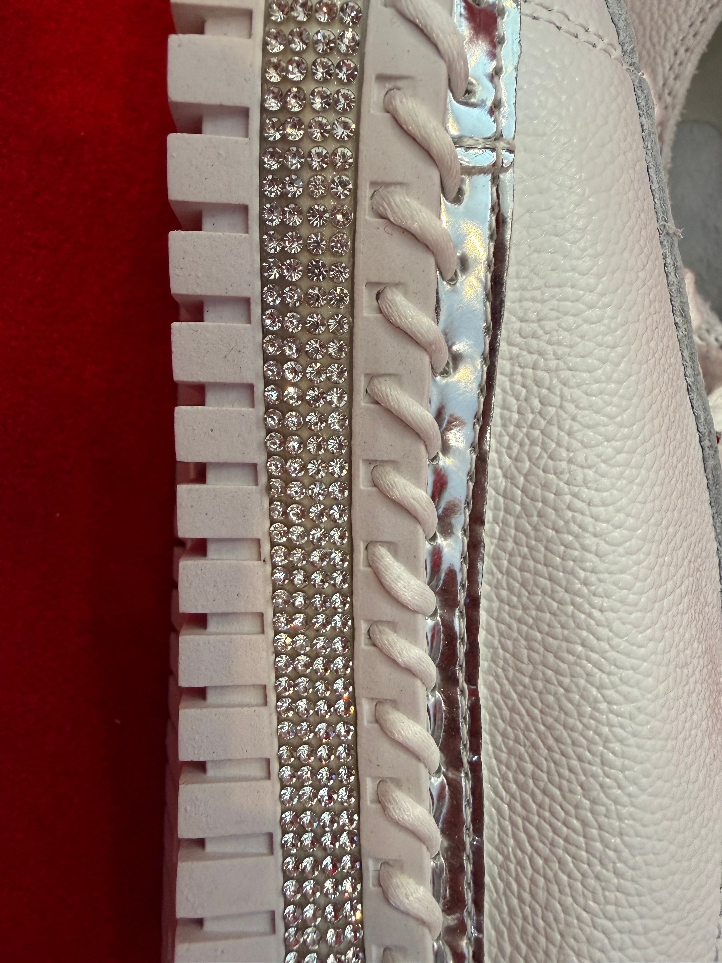 カジュアルなスニーカーでありながら、レザーの上質感と華やかなディテールで