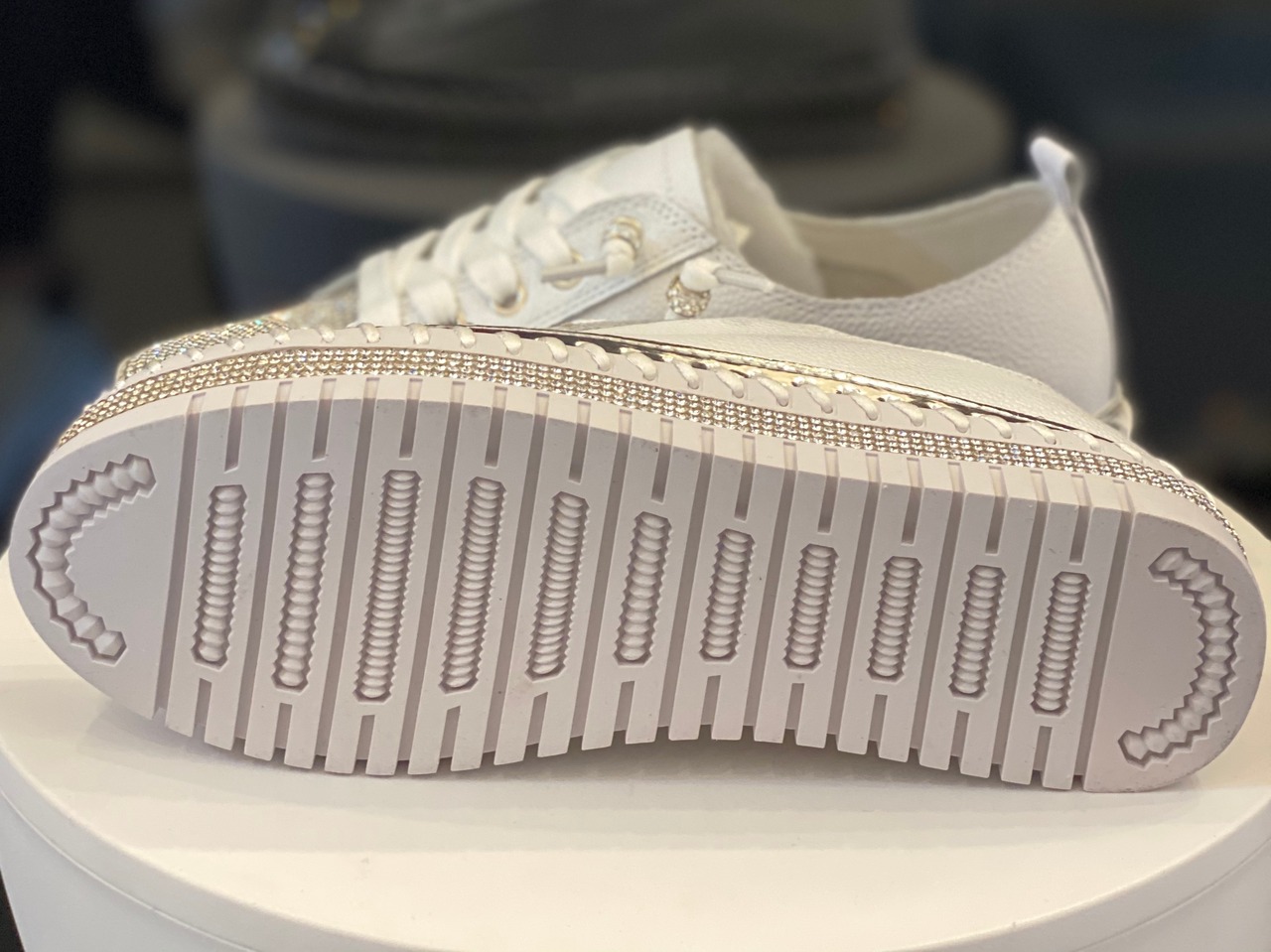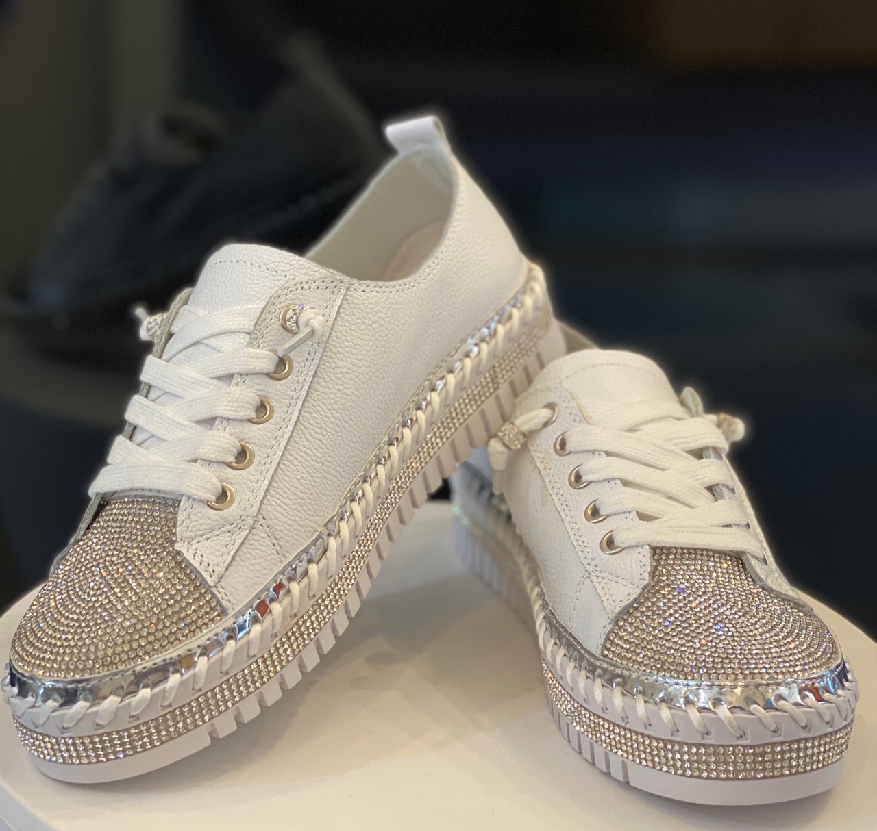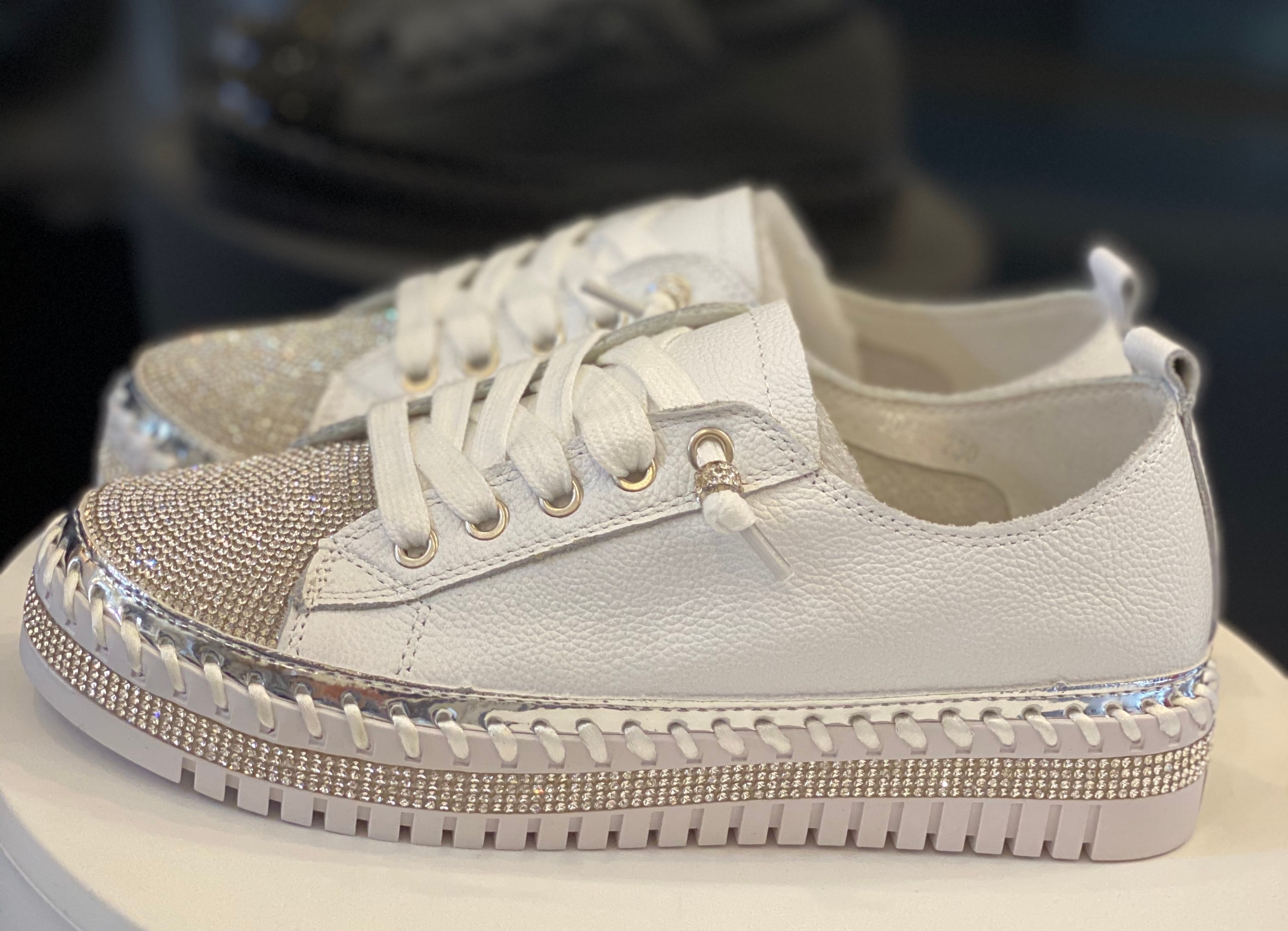 きらめきで魅せる、大人の本革スニーカー