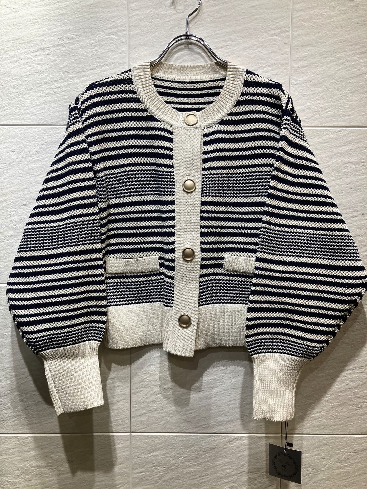 メタルGOLDボタン☆マルチボーダーニットカーディガン