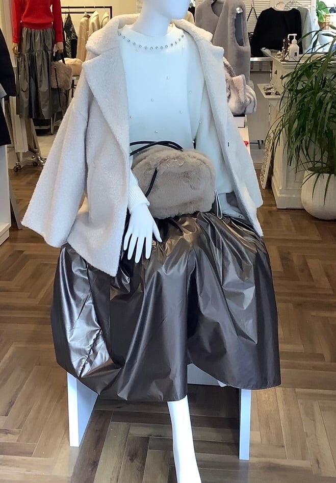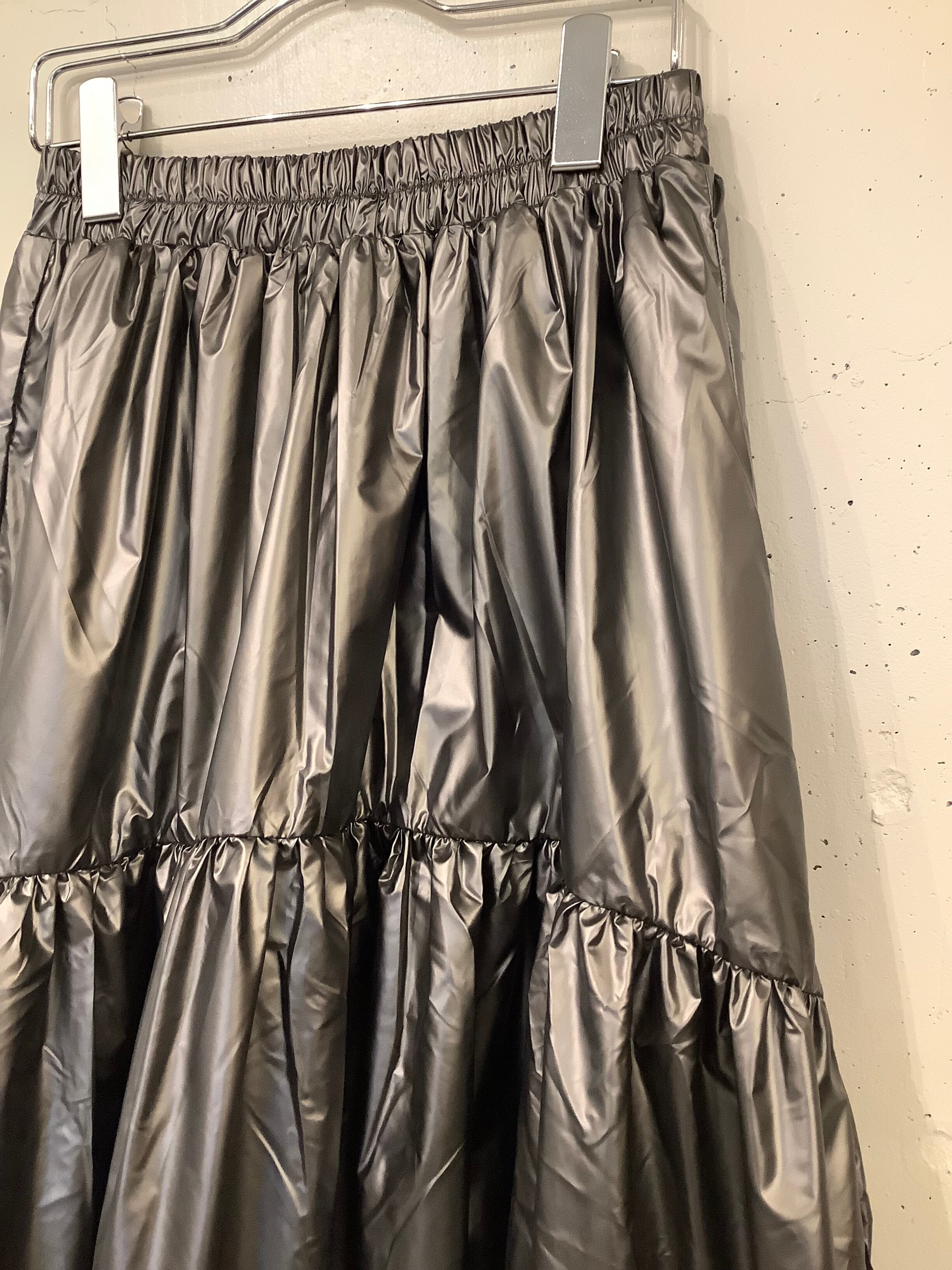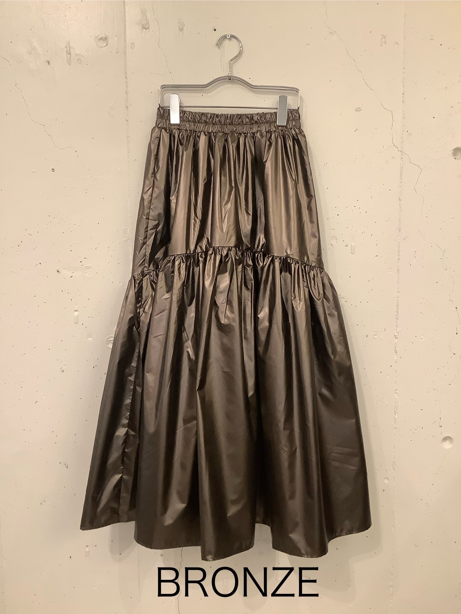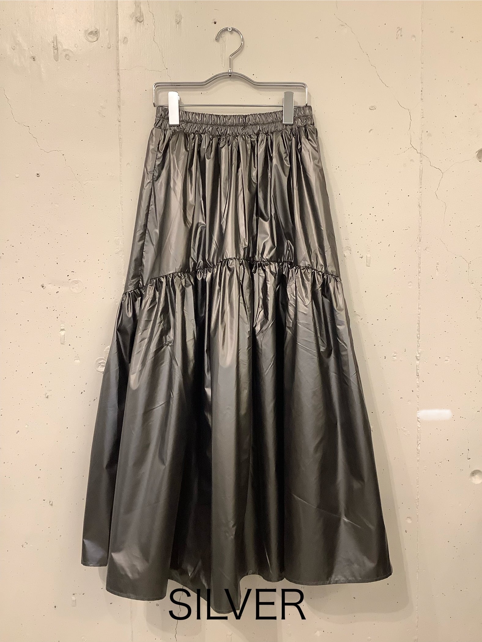 トレンドのメタリックカラーが際立つこのスカートは、程よいボリューム感で、コーディネートを華やかに彩ります!