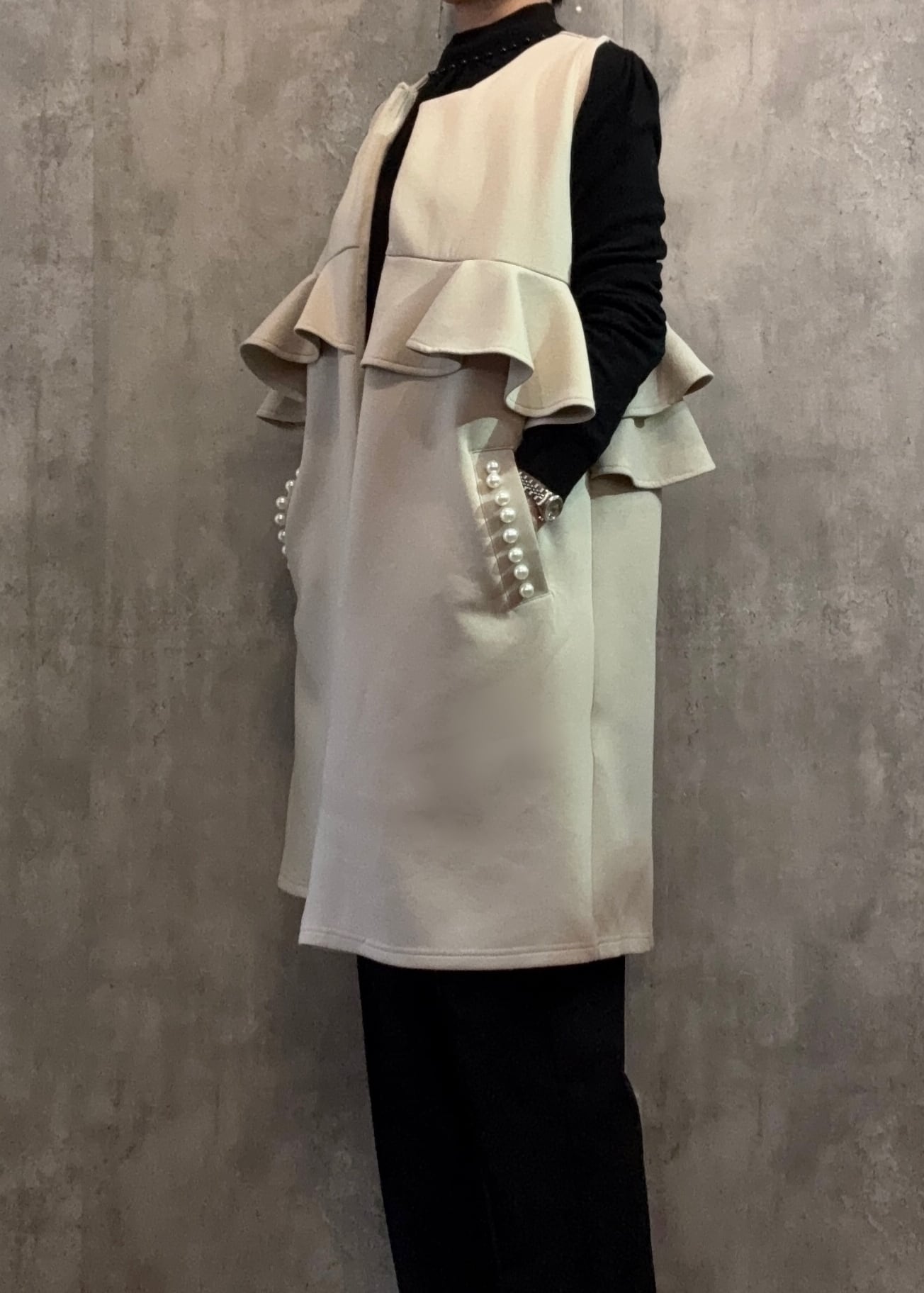 大人可愛いフリルパールジレ【ニットの上のプラスワン♡】